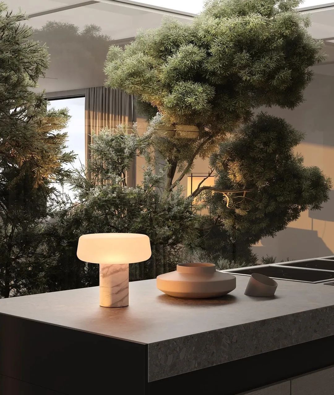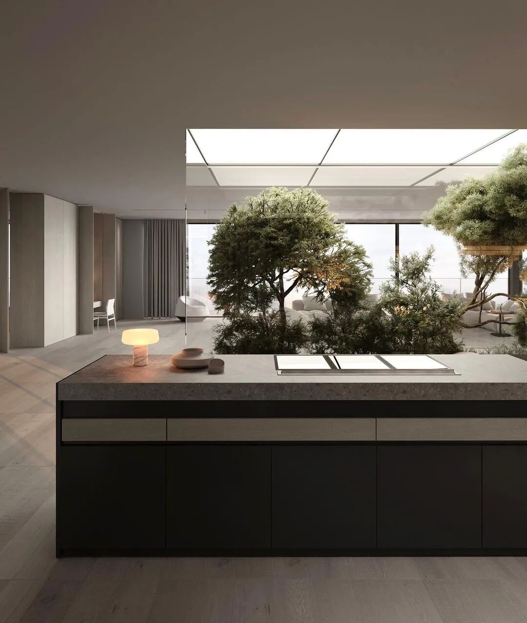 玻璃隔间是空间中的亮点之一,松树的存在增添了空间的自然气息,令空间看起来更具韵味。