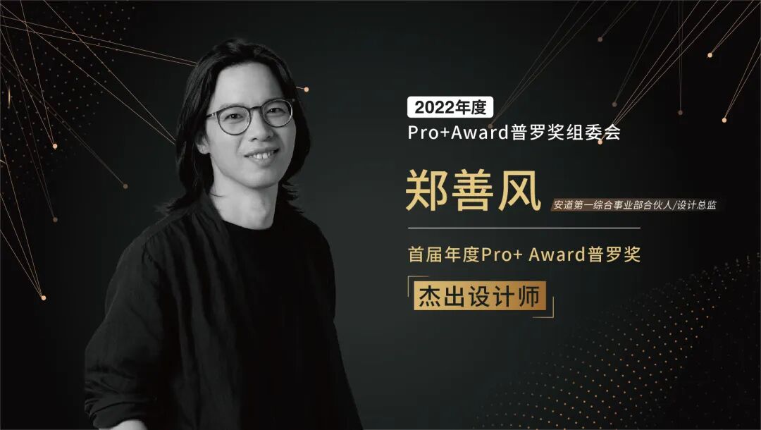 日前,Pro+Award普罗奖组委会对2022年度首届年度杰出设计师评选结果进行公布,安道第一综合事业部合伙人、设计总监郑善风入选“2022Pro+Award普罗奖年度杰出设计师”。