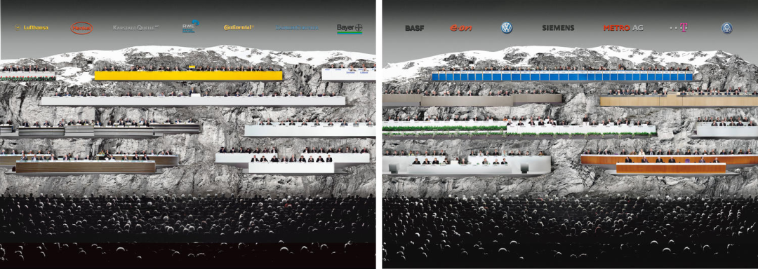 现代社会讲究秩序、效率,追求规模、进步,又大张各种消费、娱乐的满足,在此之下,作为人类的我们,开始原子化、工具化、物化。在高楼大厦、机器烟囱、人工智能等等之下,每个人类个体显得是如此渺小、庸俗、可替代。对以上种种现代症状,古斯基的作品无论形式还是内涵,都有非常恰到的回应和表达。