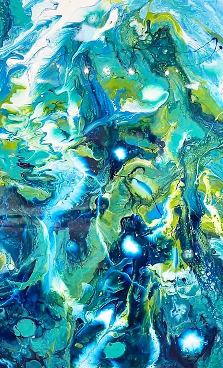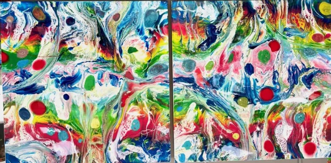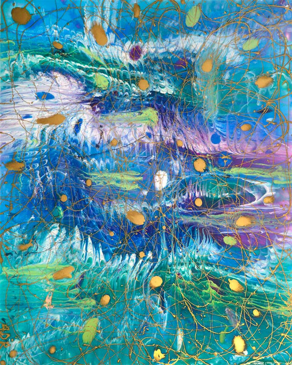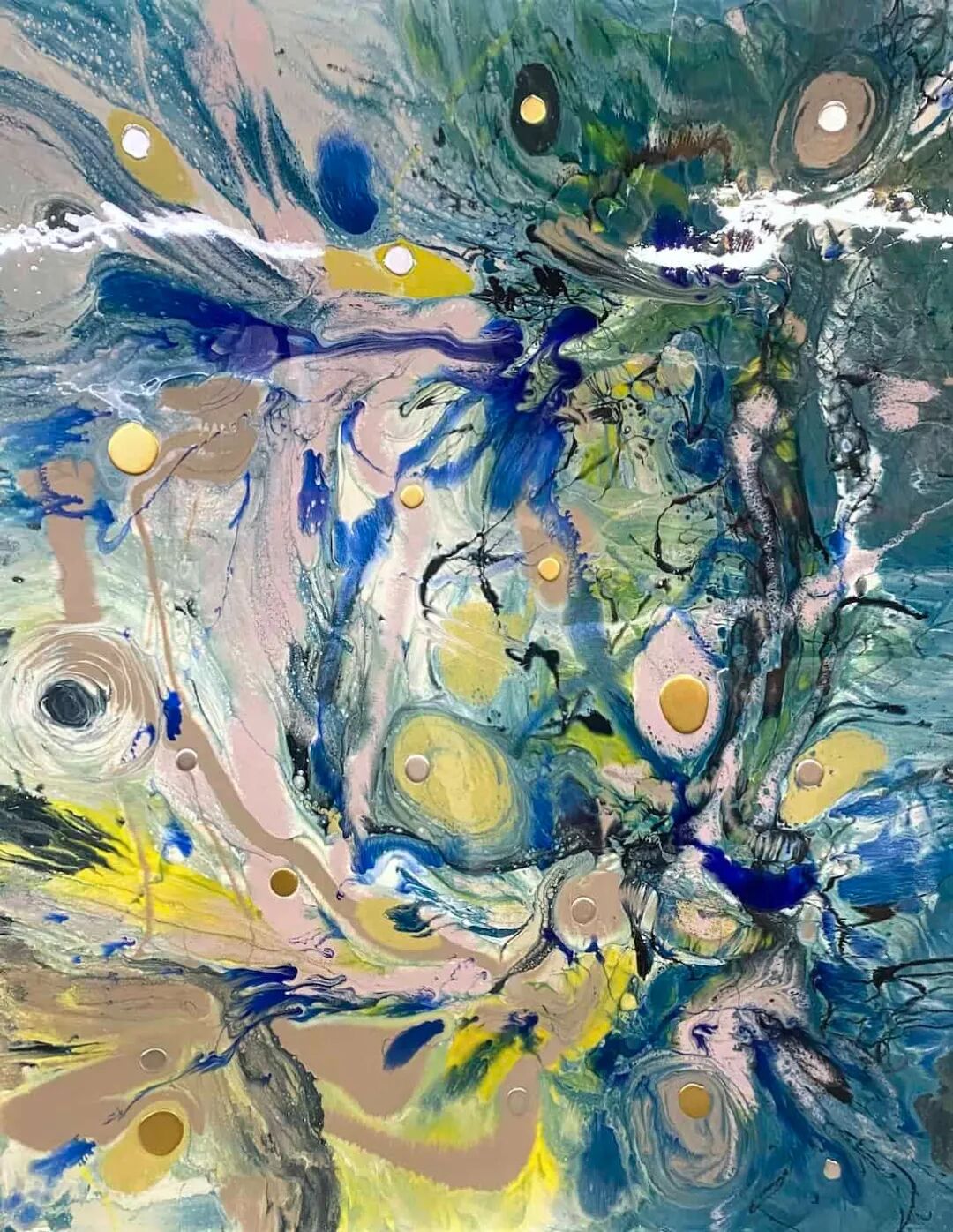通过使用纯粹的颜料和环氧树脂层,她的作品似乎让她的幻象在运动和流畅中呼吸。这些晶莹剔透的画作将你拉入一个充满好奇和惊喜的神秘境界。