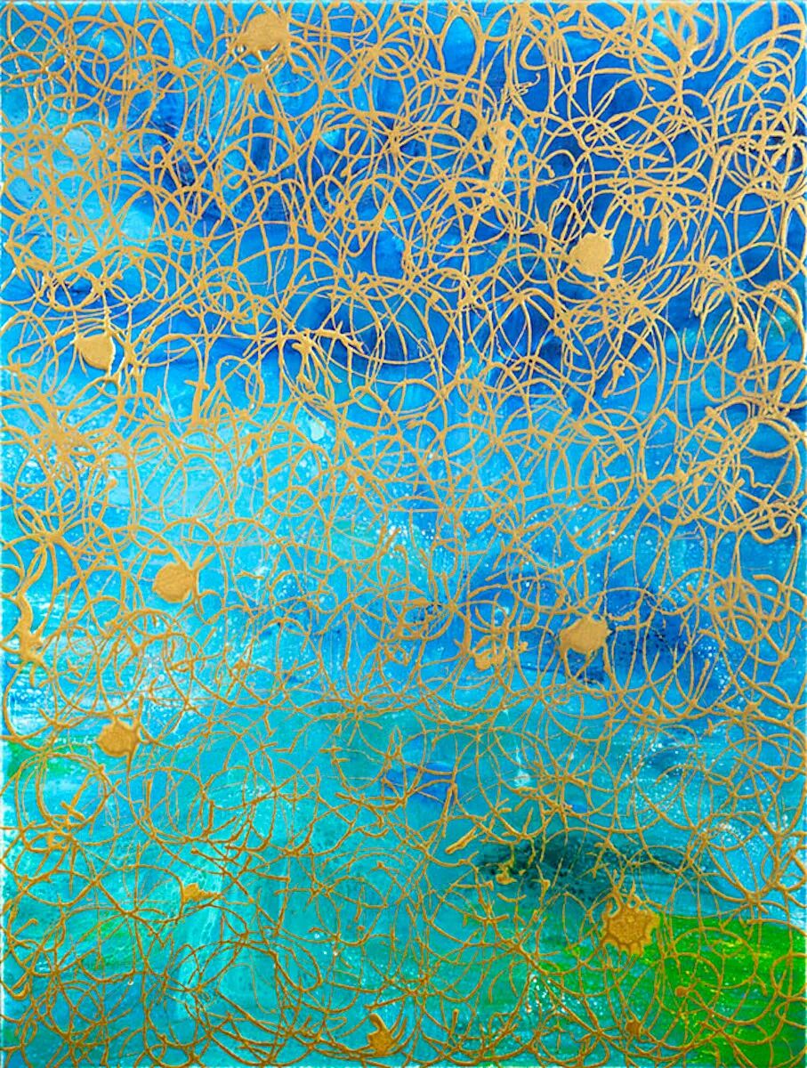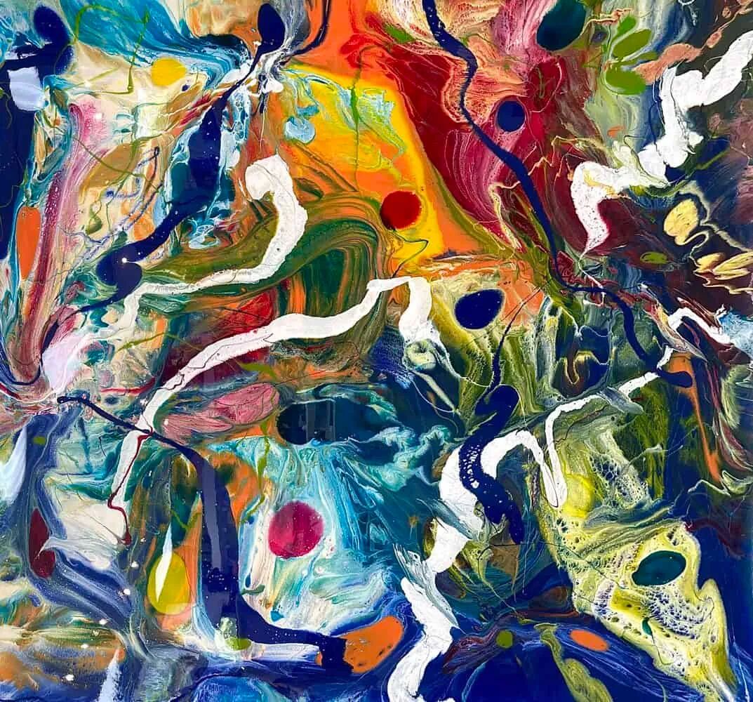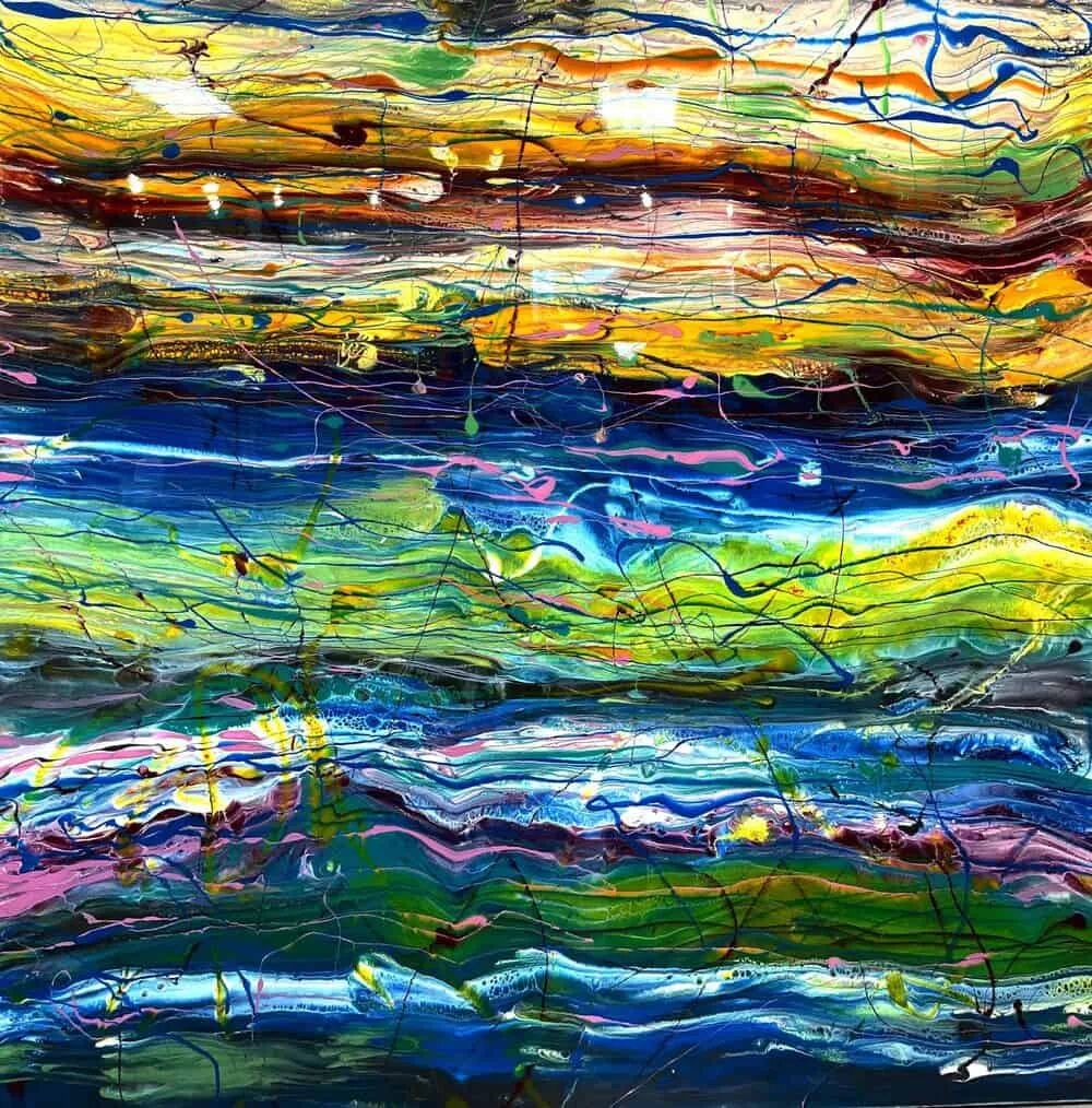 通过使用纯粹的颜料和环氧树脂层,她的作品似乎让她的幻象在运动和流畅中呼吸。这些晶莹剔透的画作将你拉入一个充满好奇和惊喜的神秘境界。