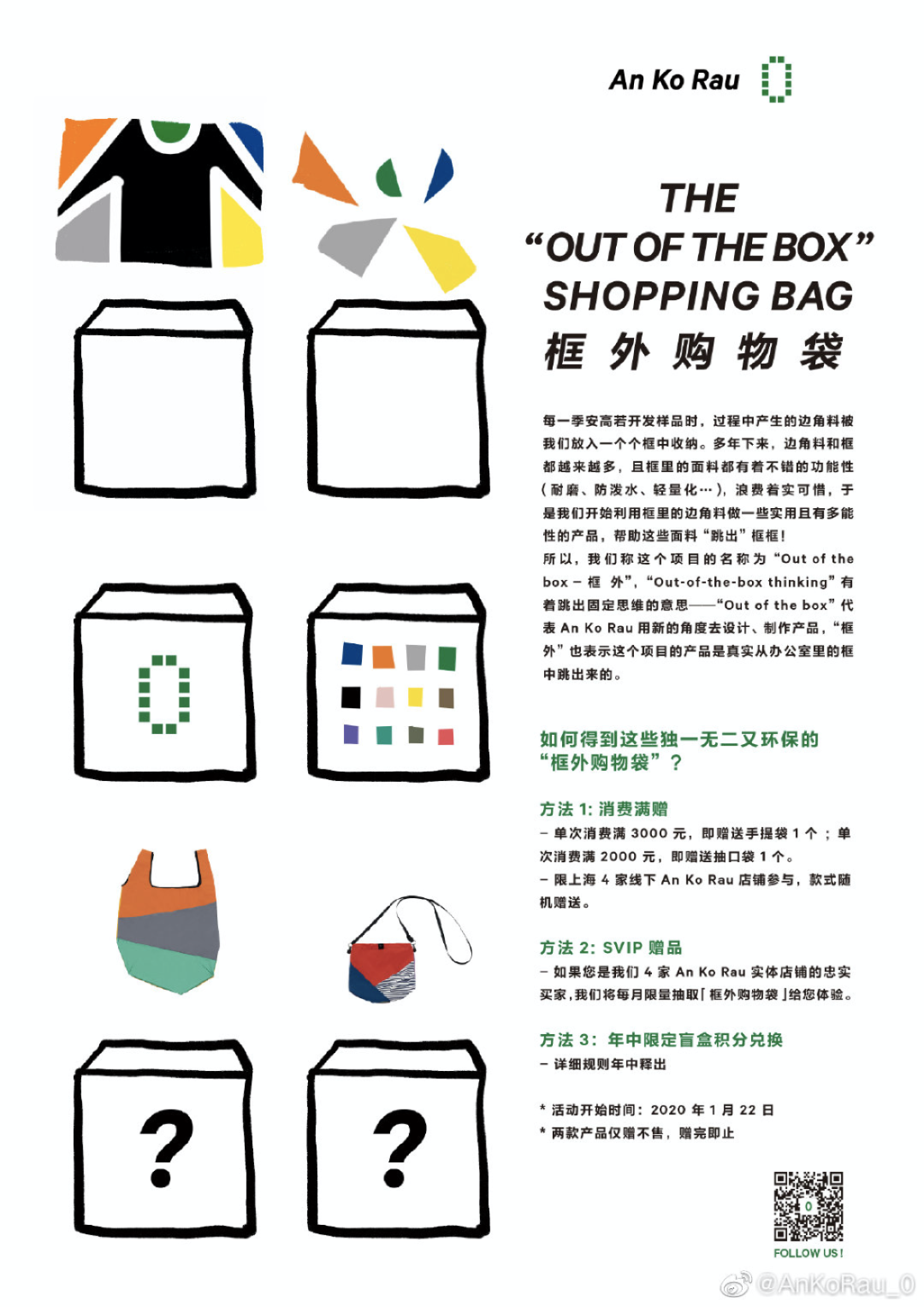每一季在开发样品时,An Ko Rau都会将产生的边角料放到框中收纳。多年下来,边角料和框越来越多,于是An Ko Rau开始利用这些边角料制作实用且有多功能性的产品,并将这个项目命名为 「Out of the box - 框外」。