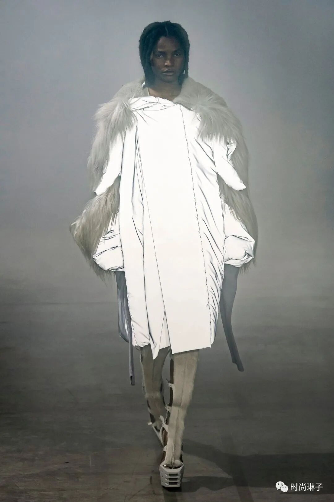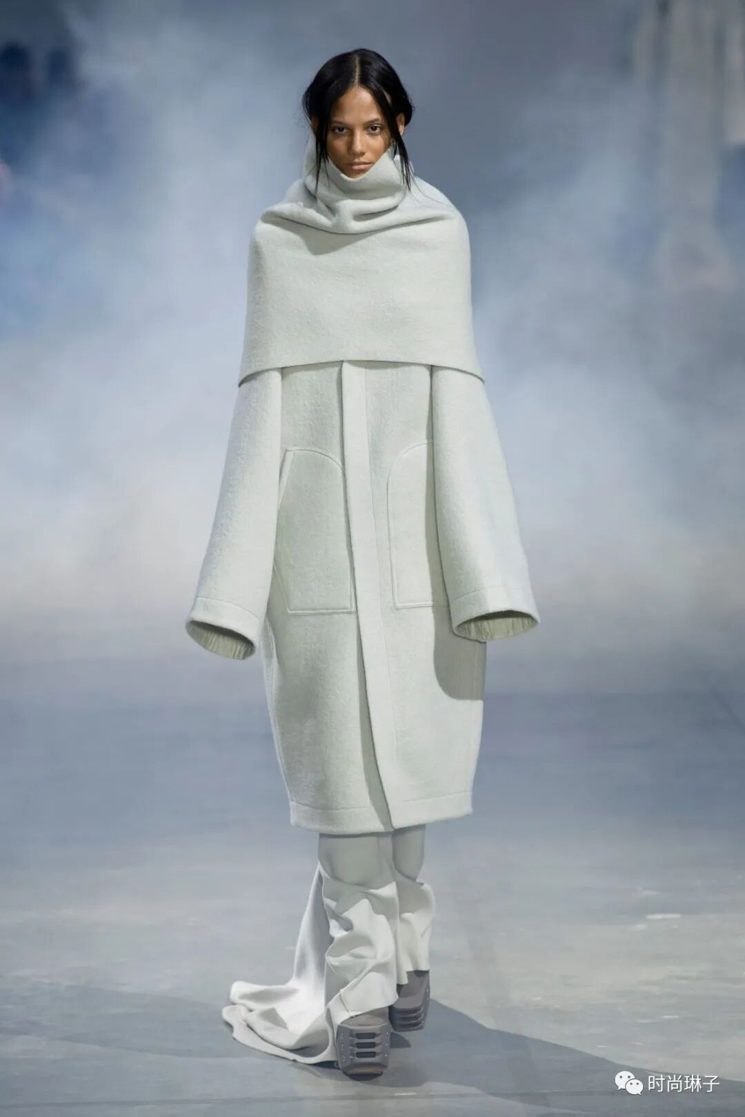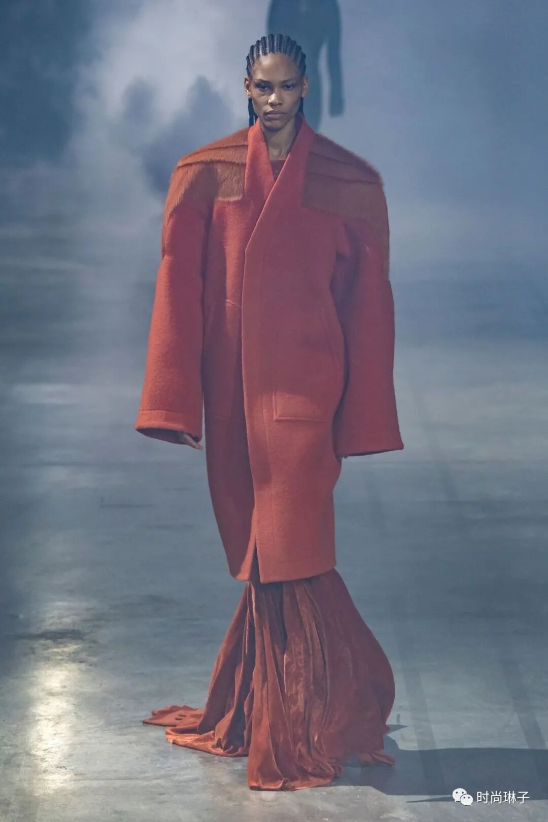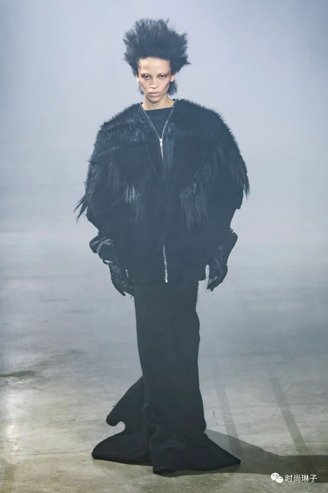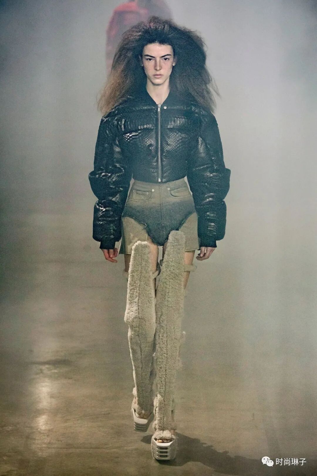 在世界局势不稳定的当下, Rick Owen 通过2022秋冬系列以及时装秀背景选曲《第五交响曲》传达了积极正面的能量,以及向死而生的美丽信仰。