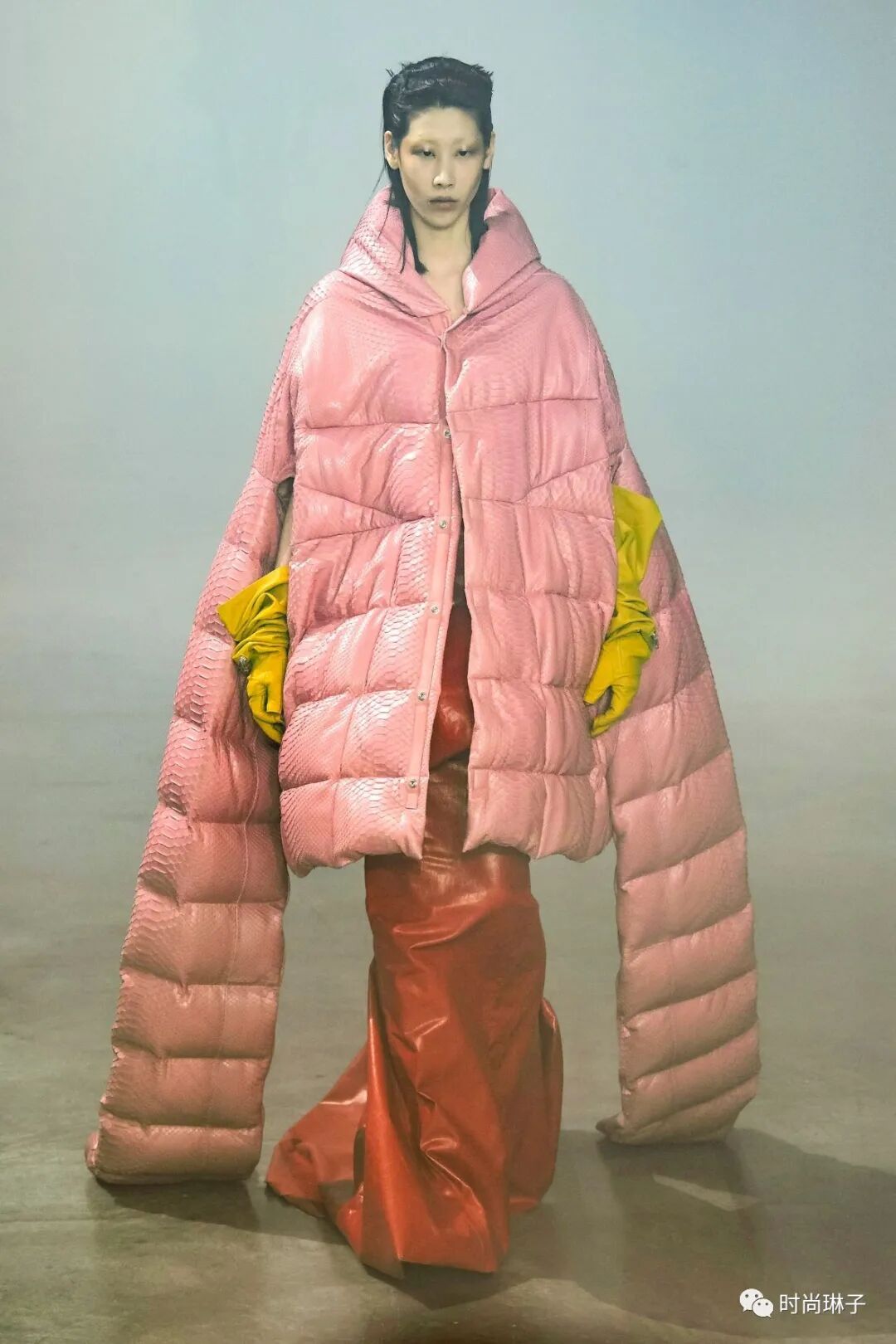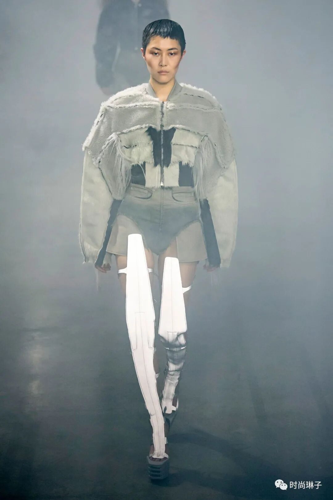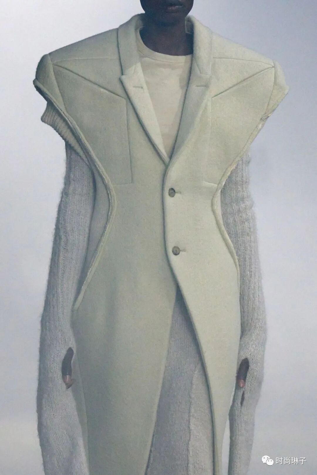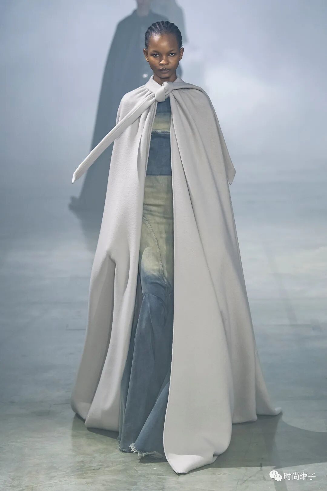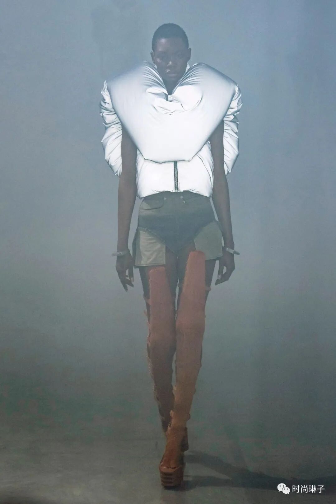 在世界局势不稳定的当下, Rick Owen 通过2022秋冬系列以及时装秀背景选曲《第五交响曲》传达了积极正面的能量,以及向死而生的美丽信仰。