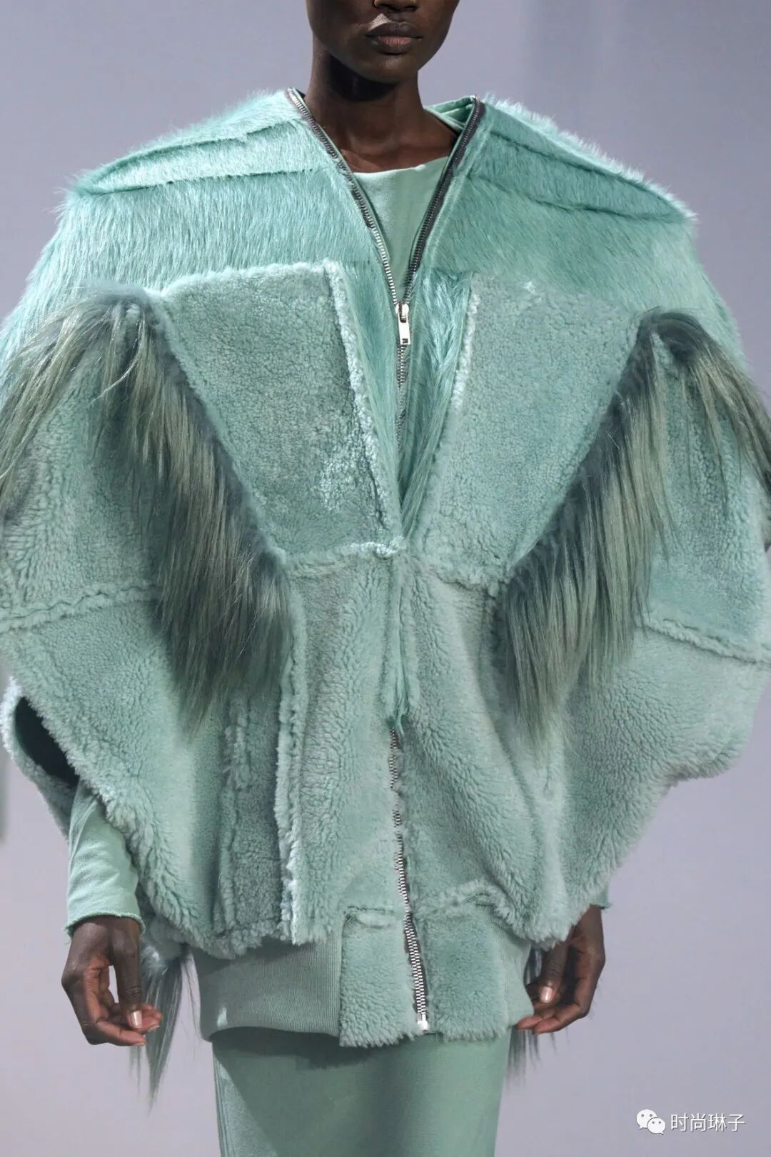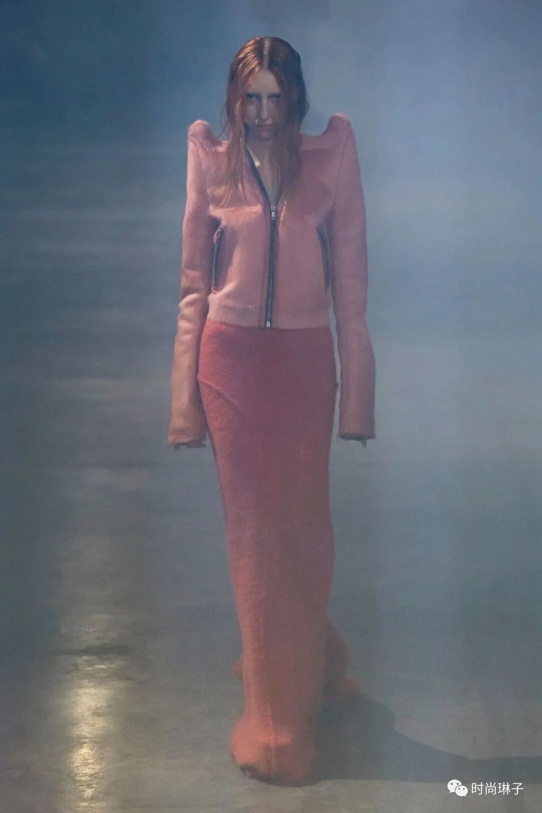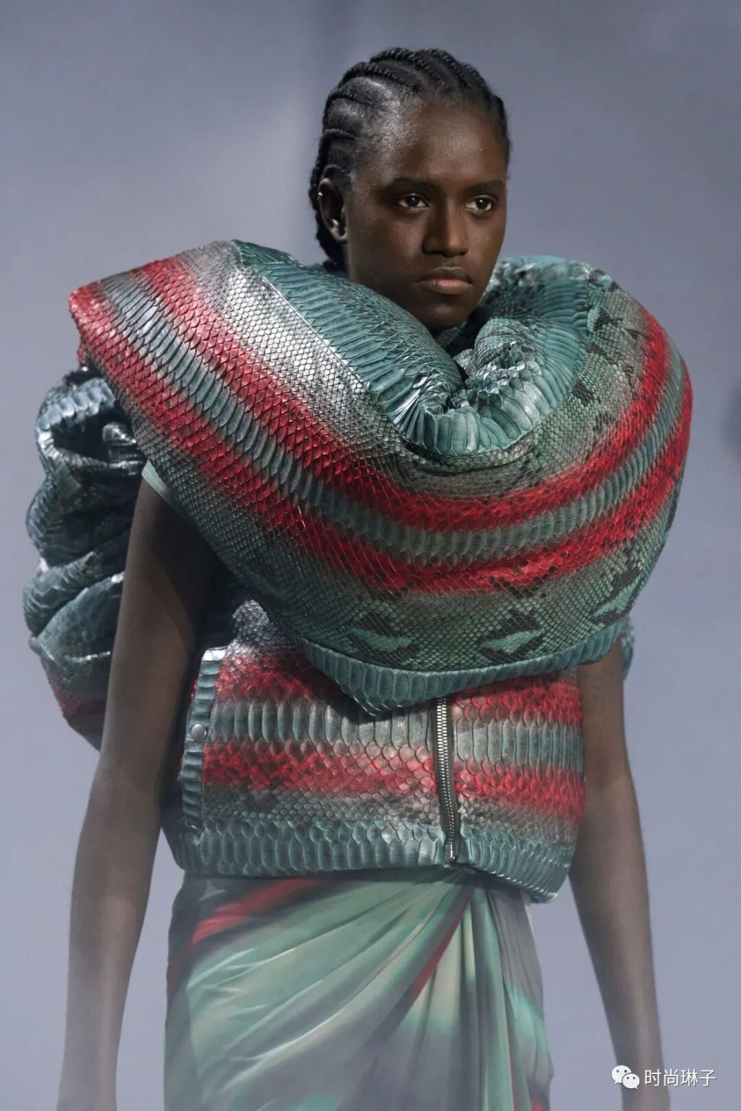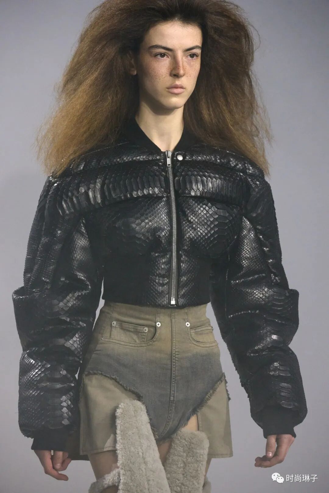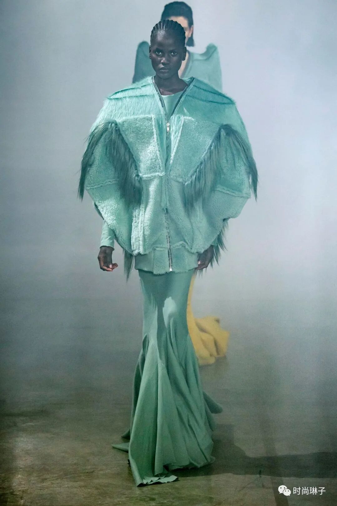 在世界局势不稳定的当下, Rick Owen 通过2022秋冬系列以及时装秀背景选曲《第五交响曲》传达了积极正面的能量,以及向死而生的美丽信仰。
