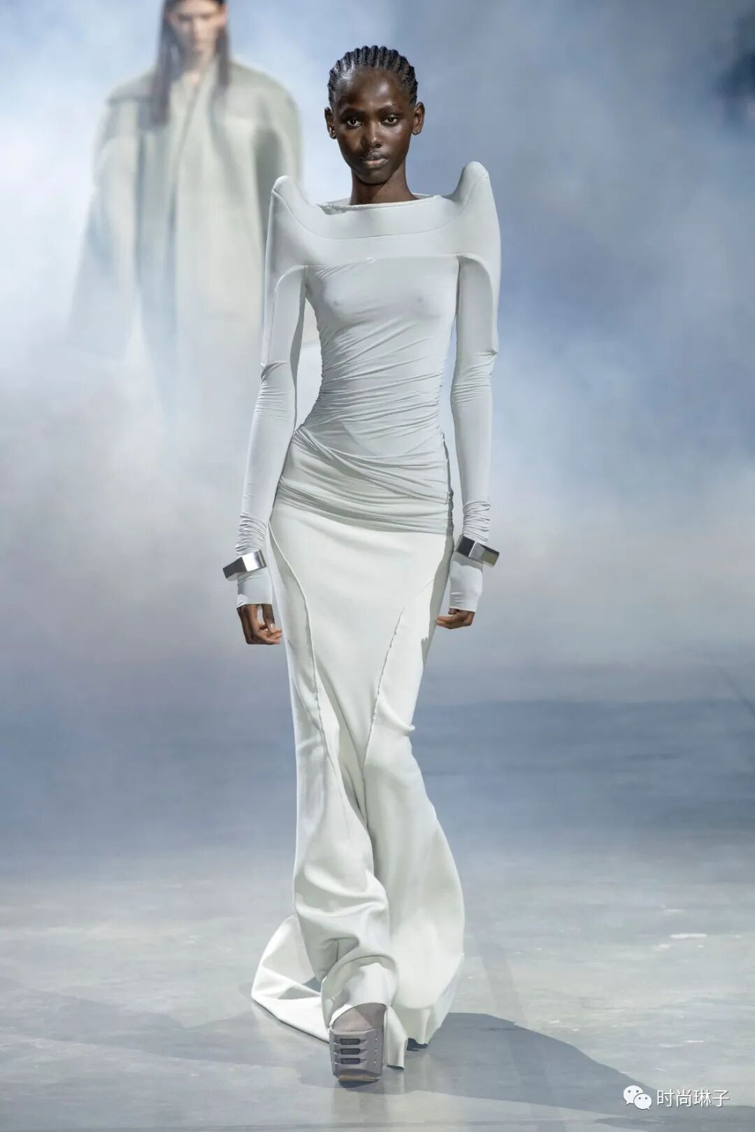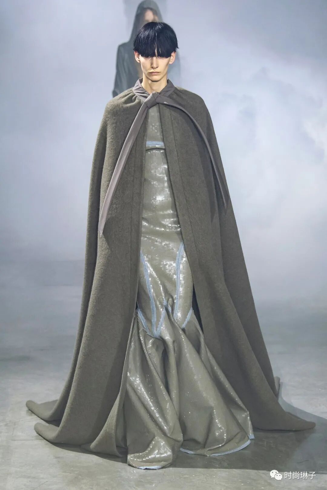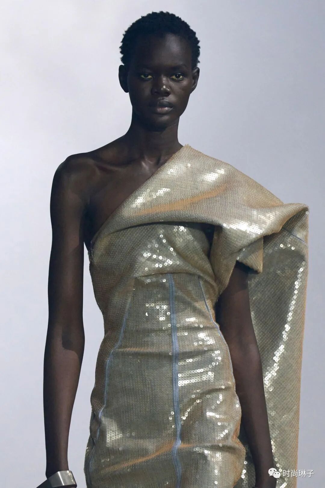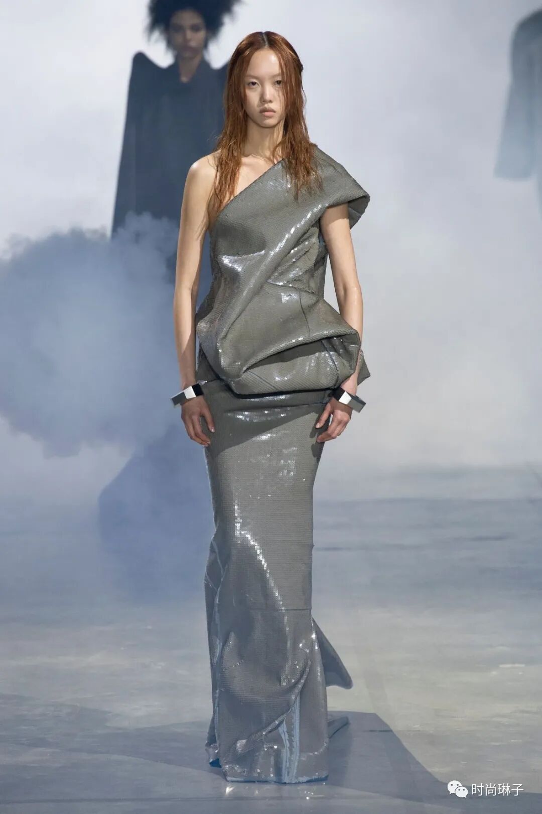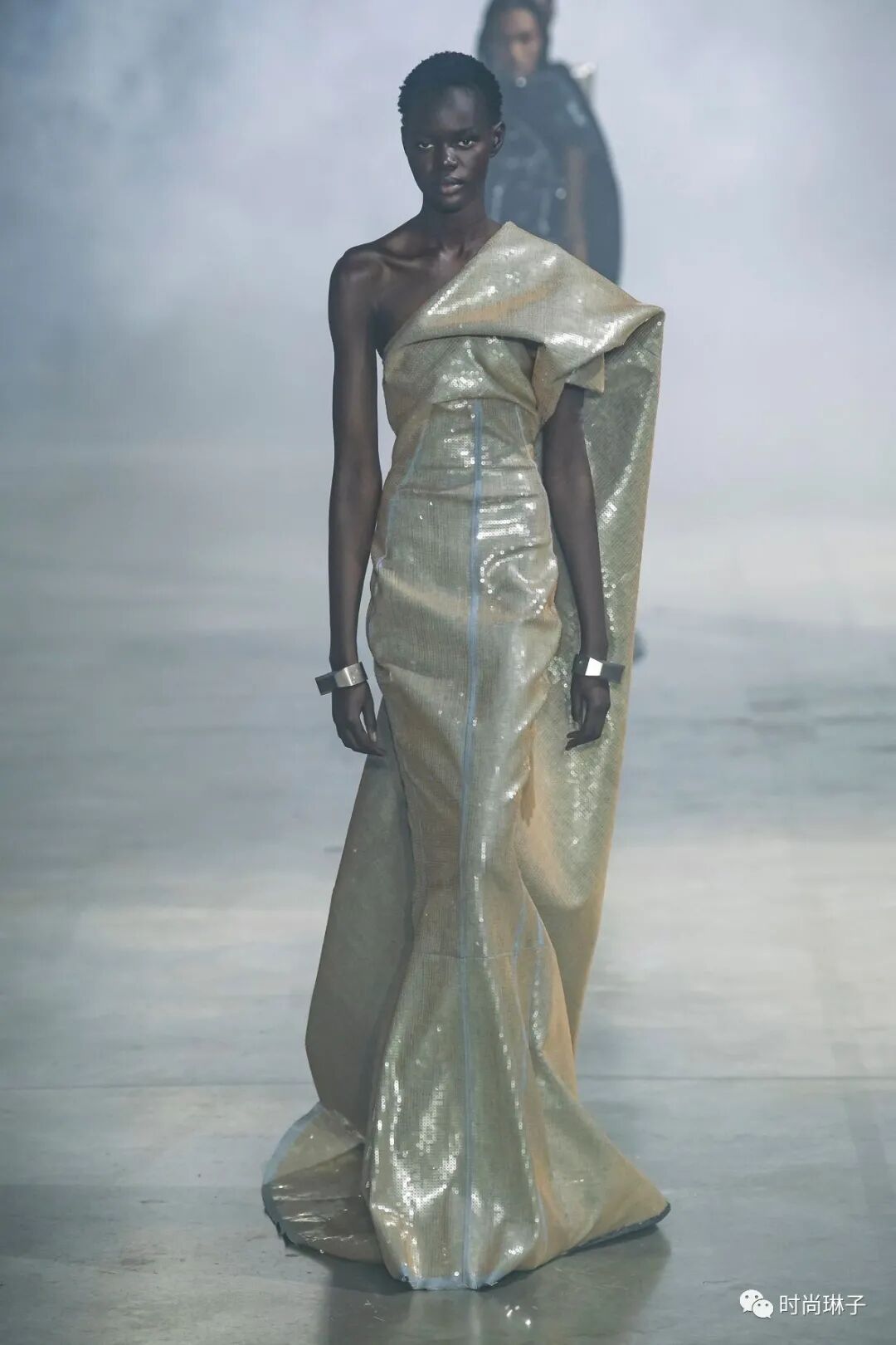 Rick Owen 2022秋冬系列中如雕塑般的亮片礼服裙,带着旧好莱坞的魅力,美丽优雅中弥漫着不凡的个性魅力。