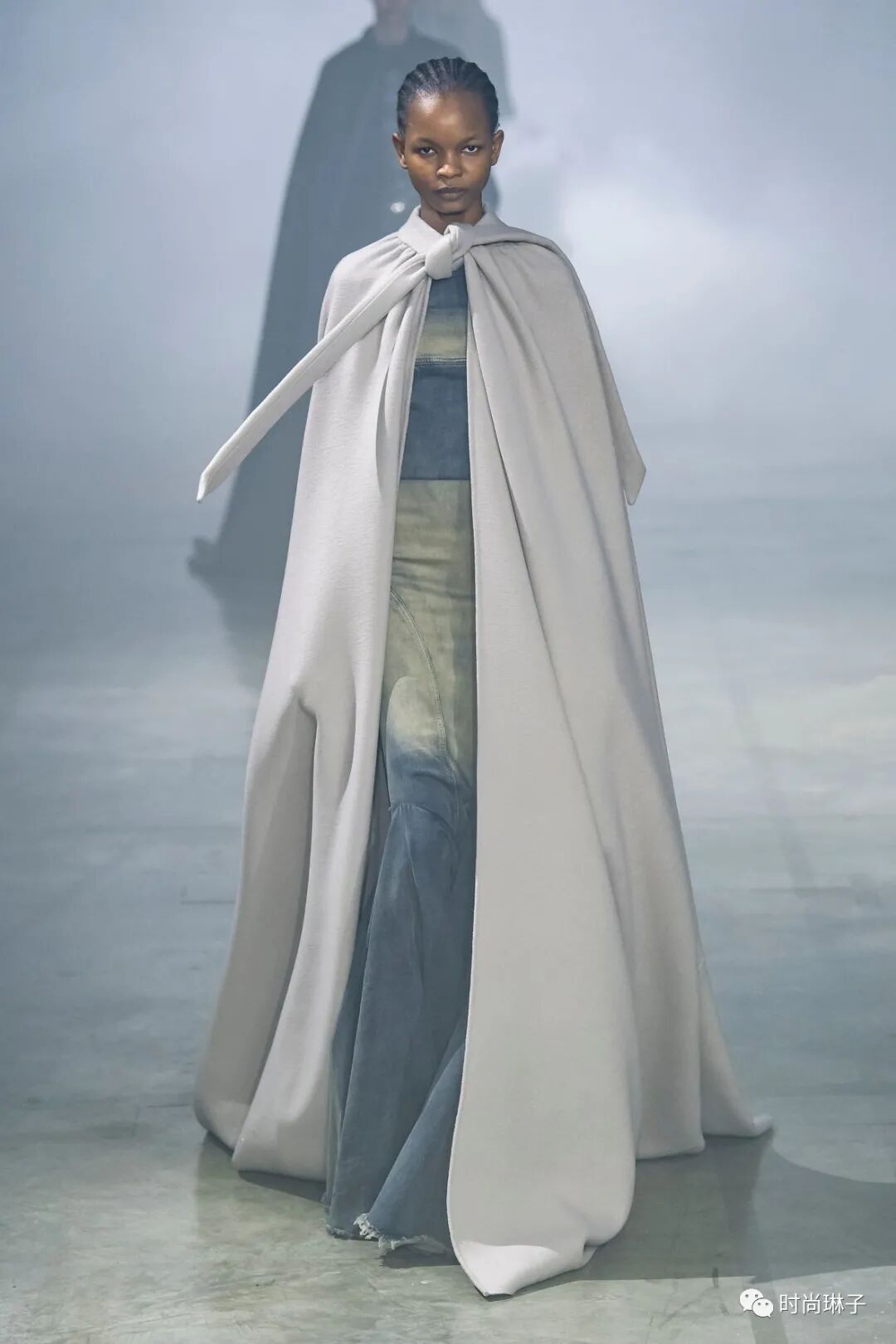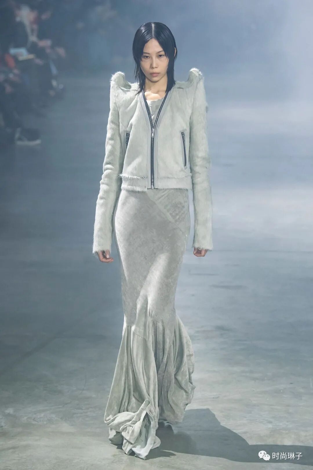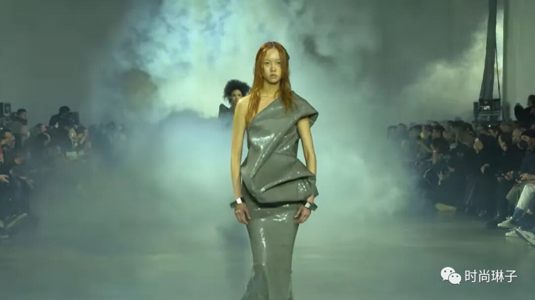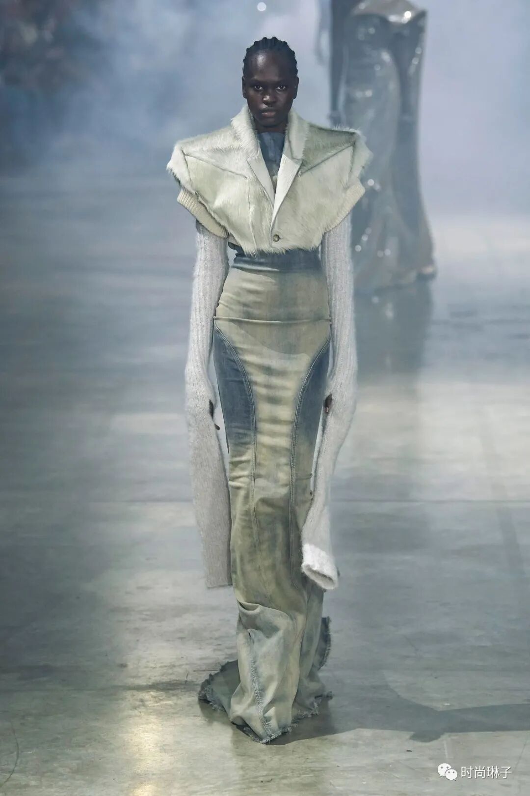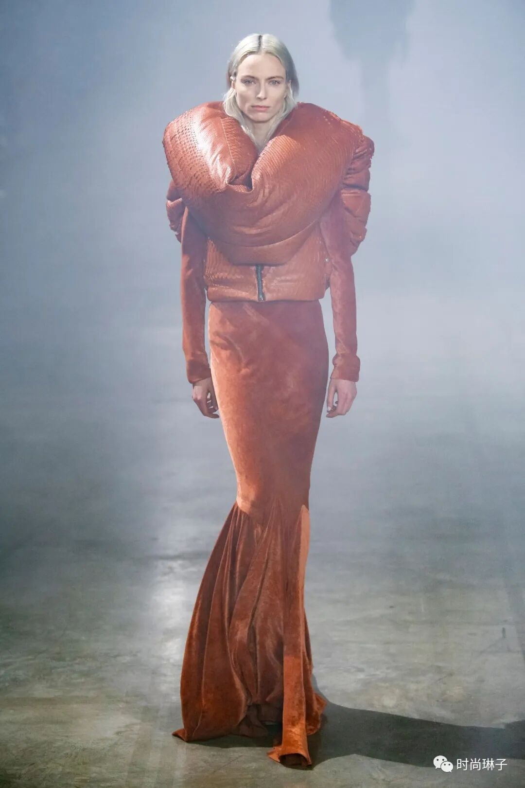 Rick Owen 2022秋冬系列中如雕塑般的亮片礼服裙,带着旧好莱坞的魅力,美丽优雅中弥漫着不凡的个性魅力。