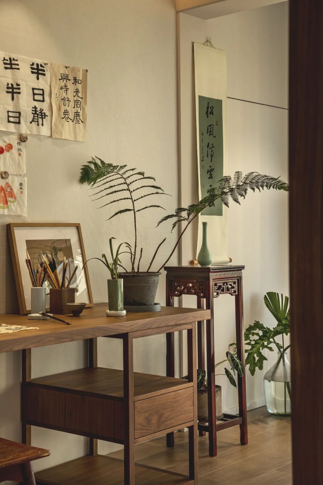 屋主喜欢喝茶、看书、练书法、享受安静闲暇的时光,一杯茶、一本书就可以坐一下午,然后写下自己的一些心得体会,在这个喧闹快节奏的城市里是非常难得的。