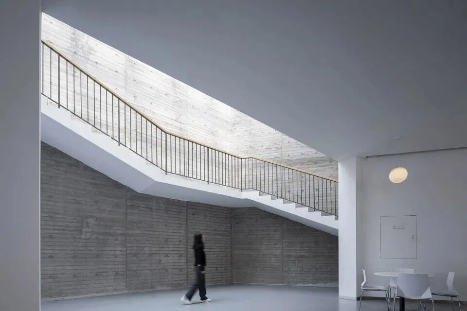 内部空间的塑造使用木材、混凝土以及白色抹灰墙面,冰冷沉静中不乏温暖柔和,用材简单而不单调