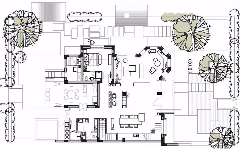 设计工作室在对场地的多次解读后,从功能的角度考虑,将一切简化,以纯粹的状态出发,在现有的建筑界限内,将空间介入,以此打破既定状态。由内向外,通过重新组织空间的大小,高低,纵深关系,以此呈现出当下的状态。