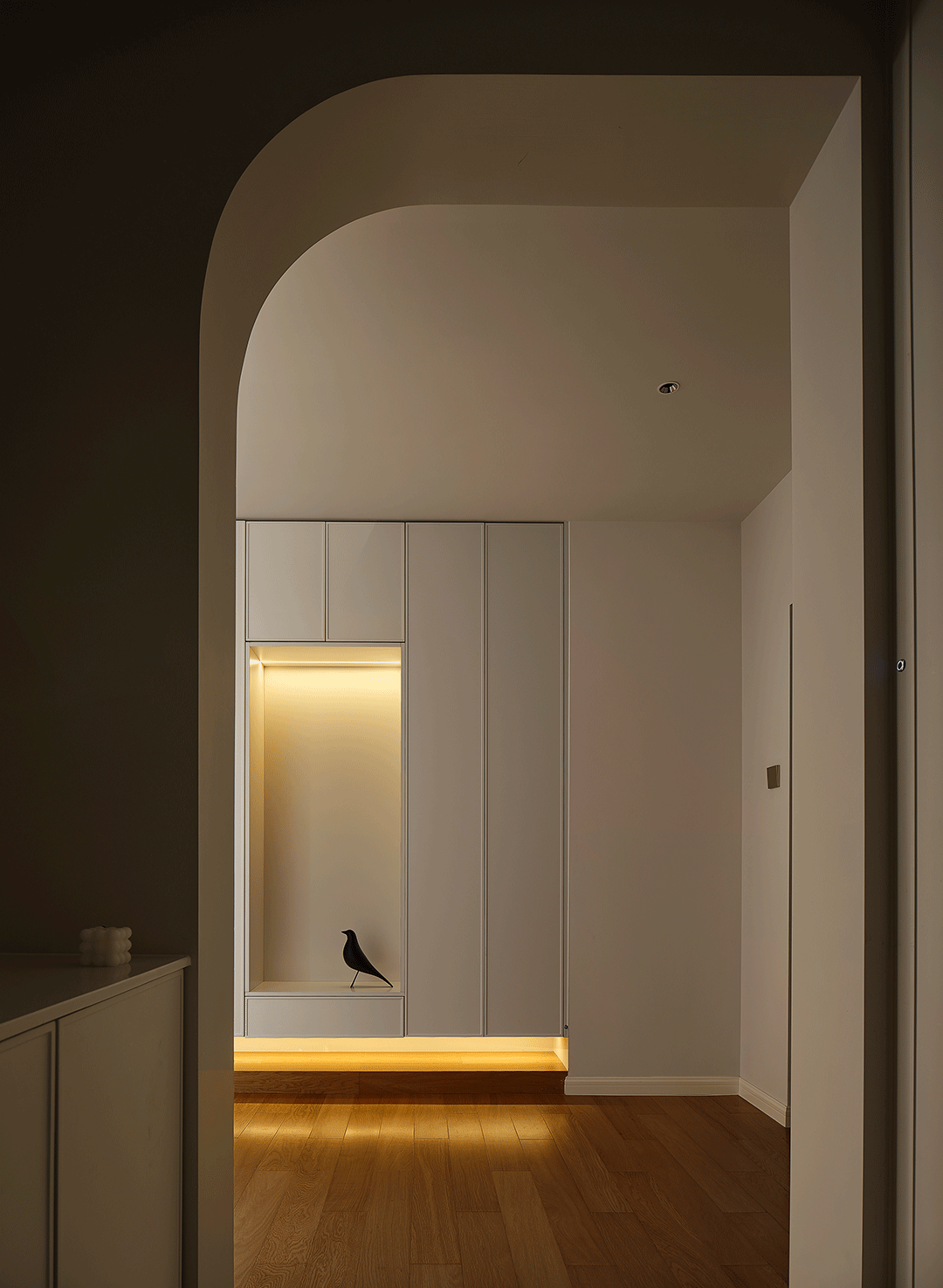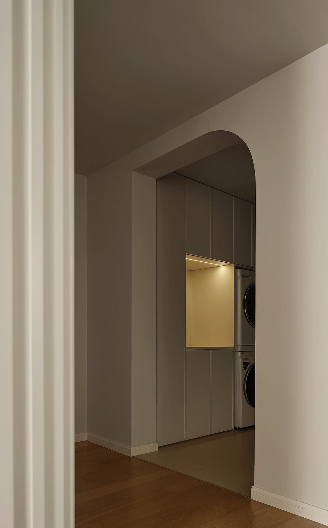 三,针对委托人反应过去冬天洗澡卫生间太冷的困扰,设计师做了两个层面的改造,首先将原有卫生间布局做了调整,尤其是空间最大的公卫分割出新的家政间区域,其次将地暖铺设到卫生间内部从根本上解决冬天卫生间采暖问题。