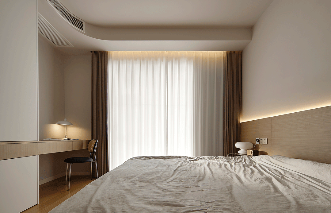 在划分出来的书房空间中增加了墨菲床作为弹性空间补充。