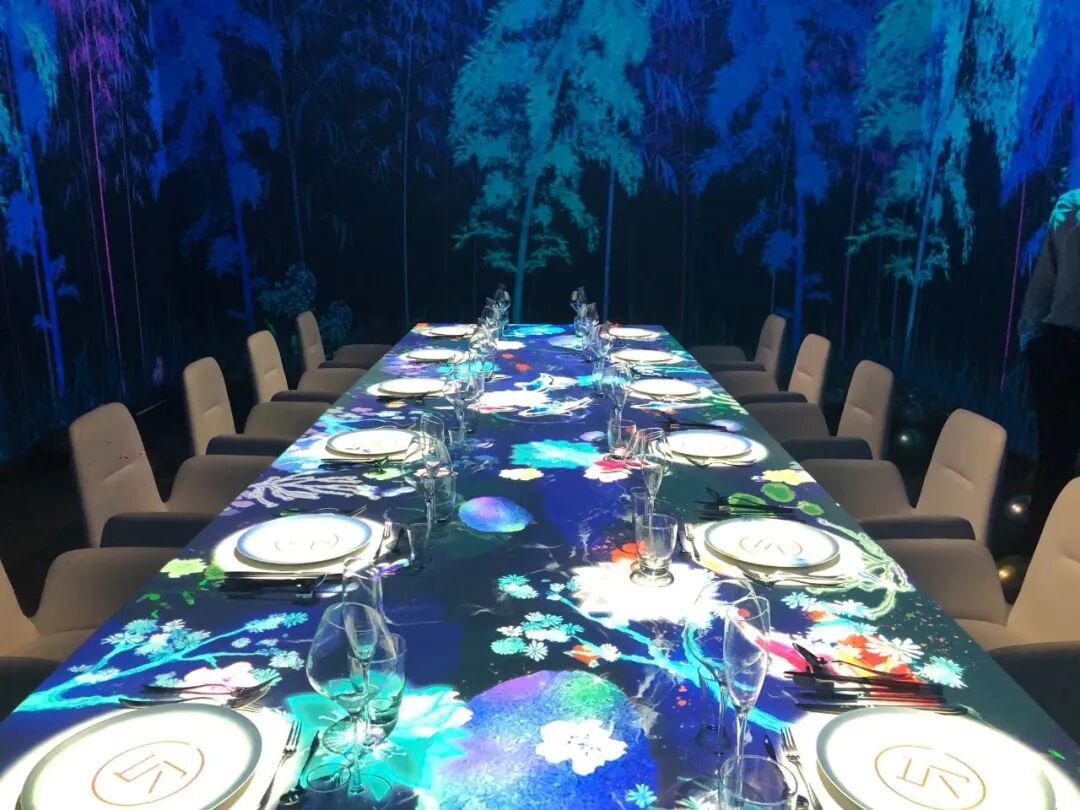 SHOWLAB所要打造的光影餐厅,是将光影视觉艺术画面与饮食文化、空间相结合,通过光影技术,让用餐不仅限于味觉和嗅觉的享受,也变成一场视觉盛宴。如何通过深层互动体验方式让用餐者成为这个沉浸式场景中的一部分,在用餐过程中随意的一个动作就将改变光影效果的变化。这种新型的沉浸式体验将用餐者的全部感官打通,将沉浸展览、餐饮、互动体验三者链接在一起,使用餐者每一分一秒都充分沉浸在其营造出的氛围感和神秘感中。