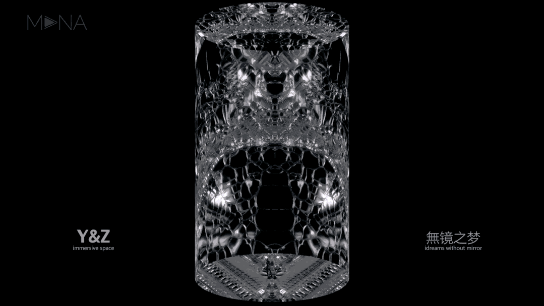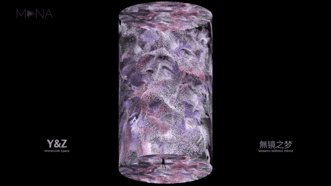 乔治亚·欧姬芙遗世独立的欲望之花和她创造的绽放世界,让我们向内观看重塑自我,而“無镜之梦”是一个由数字建构的计算宇宙,像一件时间和空间的容器,呈现元宇宙中的生命进化,AI学习创造使数字计算自然流淌,而艺术家则控制欲望的走向。