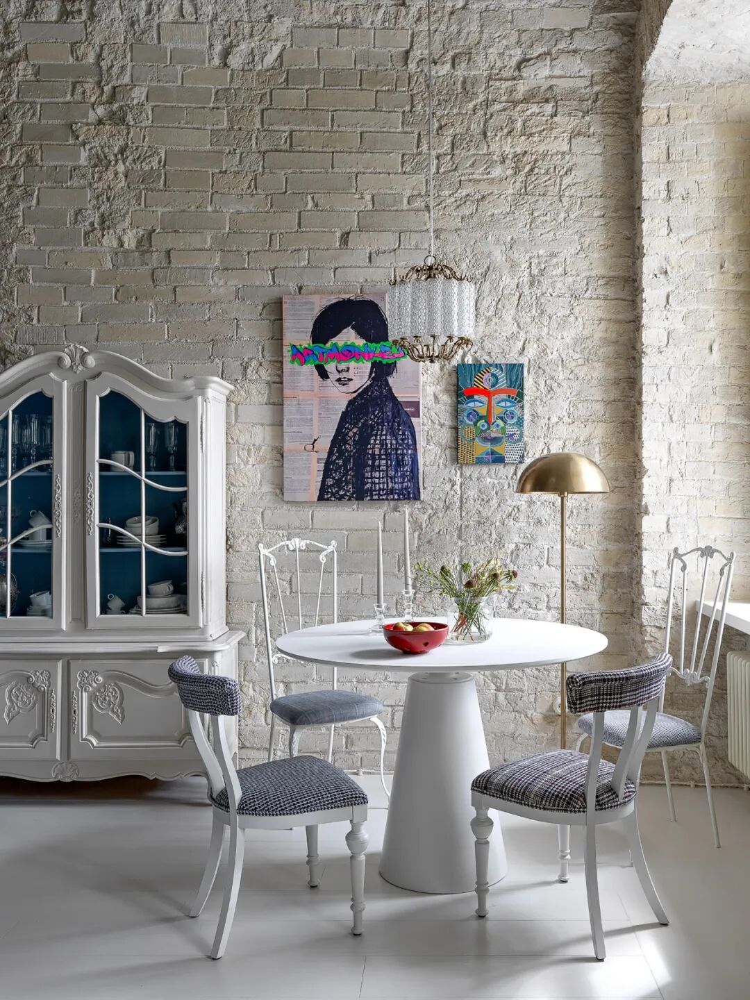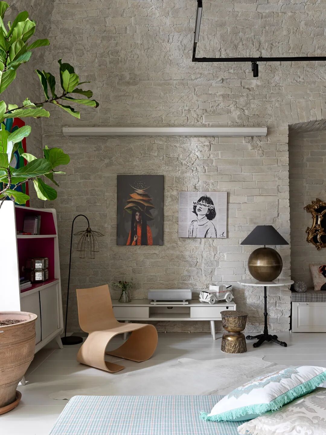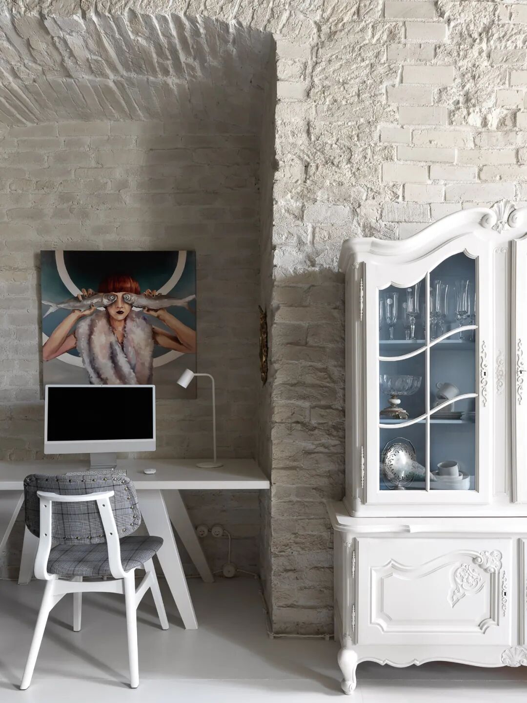 马罗塞克公寓的设计保留建筑的砖墙粗粝的肌理,这是是设计师Anna Erman的一个大胆的想法这也让空间中现代又出挑的艺术收藏更加突出。建筑的美不仅让艺术品和独特的装饰作品变得更加有生活化,也让它们为灰白的底色增加活力。