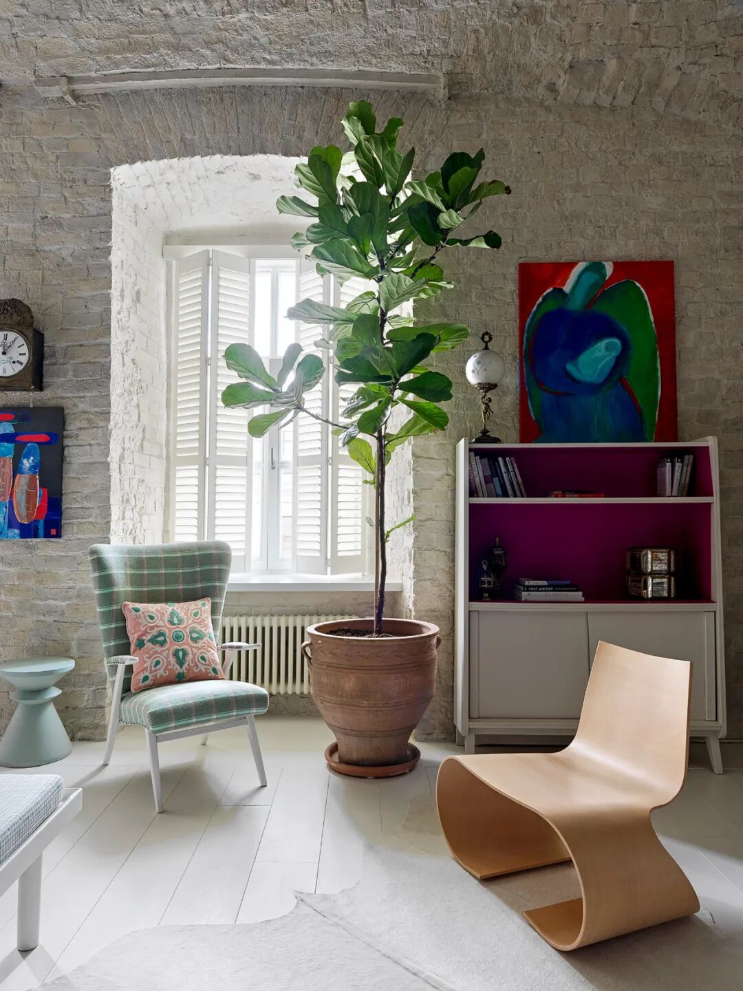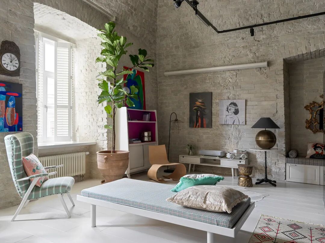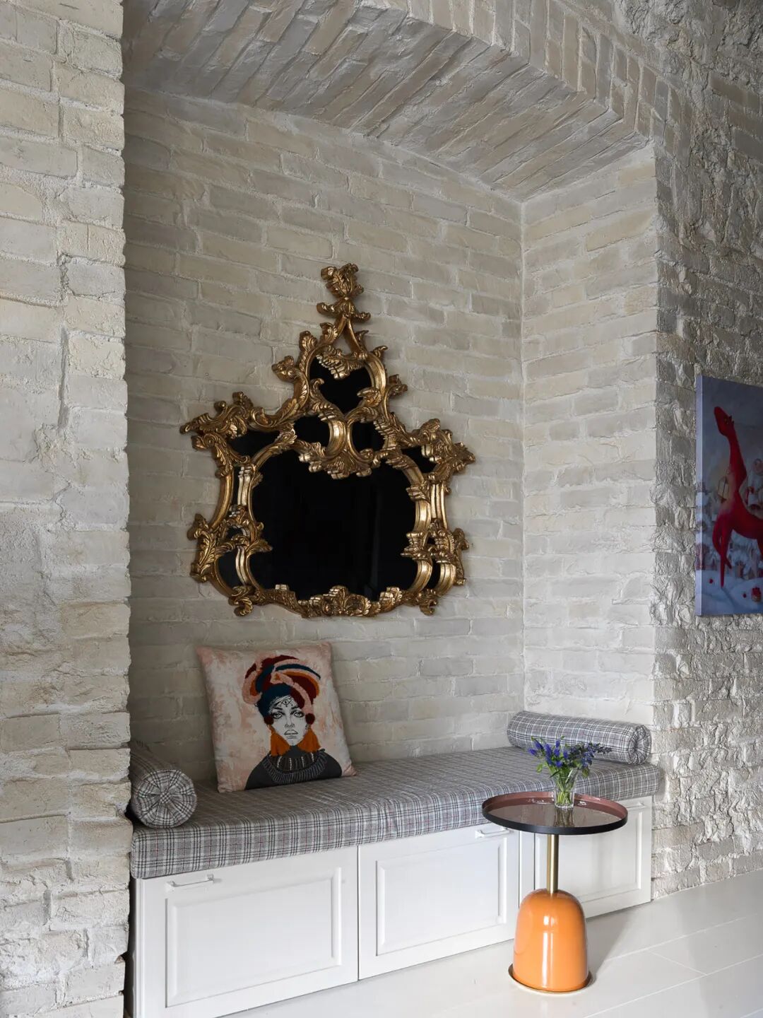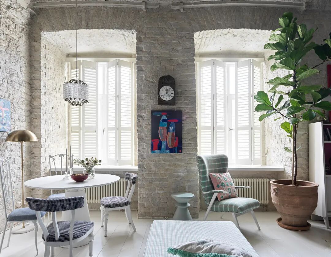 马罗塞克公寓的设计保留建筑的砖墙粗粝的肌理,这是是设计师Anna Erman的一个大胆的想法这也让空间中现代又出挑的艺术收藏更加突出。建筑的美不仅让艺术品和独特的装饰作品变得更加有生活化,也让它们为灰白的底色增加活力。