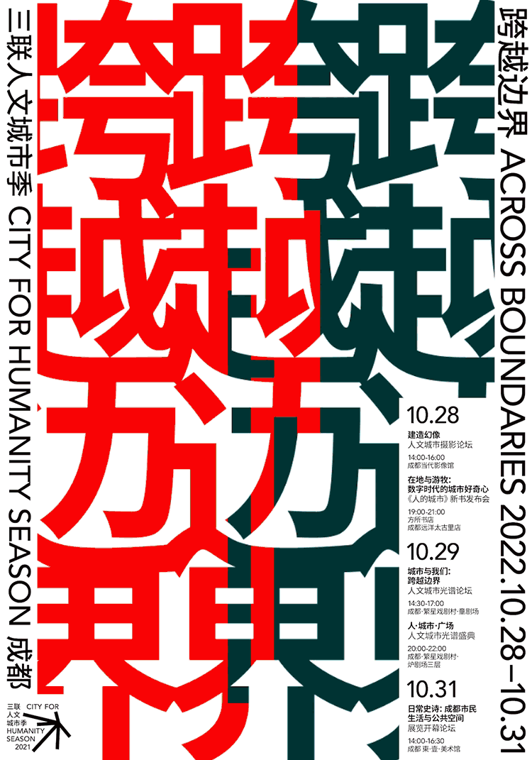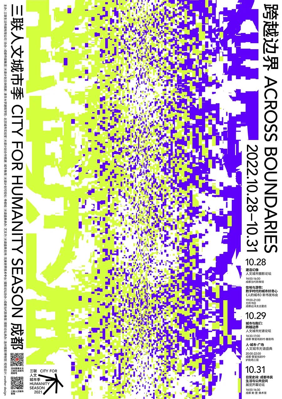 2021年,三联人文城市奖的主题设定为“跨越边界”,强调了人与人、人与空间的边界重建。身处的网络化城市中,数字媒介与城市空间之间已经出现了结构性耦合,媒介技术创造的虚拟空间与广场、街道、公园等实体的城市地理空间合二为一,原本实地空间中大量的“直接经验”与媒介技术的“中介经验”之间的边界已经模糊,这种模糊性带来的问题与可能性并存。我们把“边界”作为切入点,将此中间状态模糊,以一种碎片化的方式来化解其边界。以一种更广义的“边界”以此博弈和体现张力。以“边界”贯穿于视觉系统之中,以体现其“跨越边界”的多元开放性。