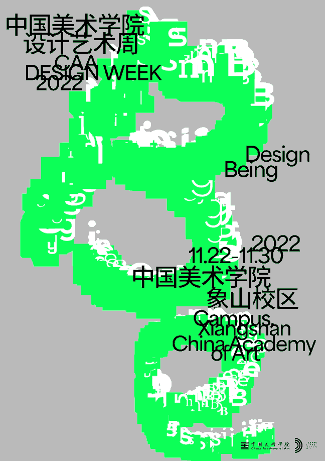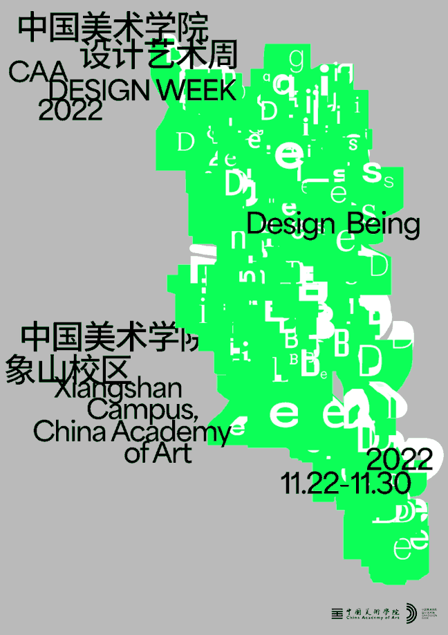 Design Being是2022年中国美术学院艺术设计学院设计周的主题。设计学科发展到今天,设计的形式一直在改变,承载设计的媒介也一直在发生改变,设计的使用者也在发生改变,媒介的交替促使其不断更新转化。我们尝试将这“进行中”的未完成状态以一种生长扩张的方式呈现,通过鼠标动作及电脑字库的调用,随机生成不同的字体及图形形态。每一小块代表着设计中某一门类或方法手段,这些小方块的自由生长变化最终构建成了设计“being”魅力。