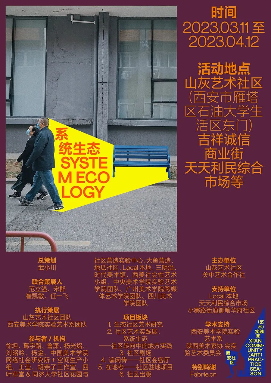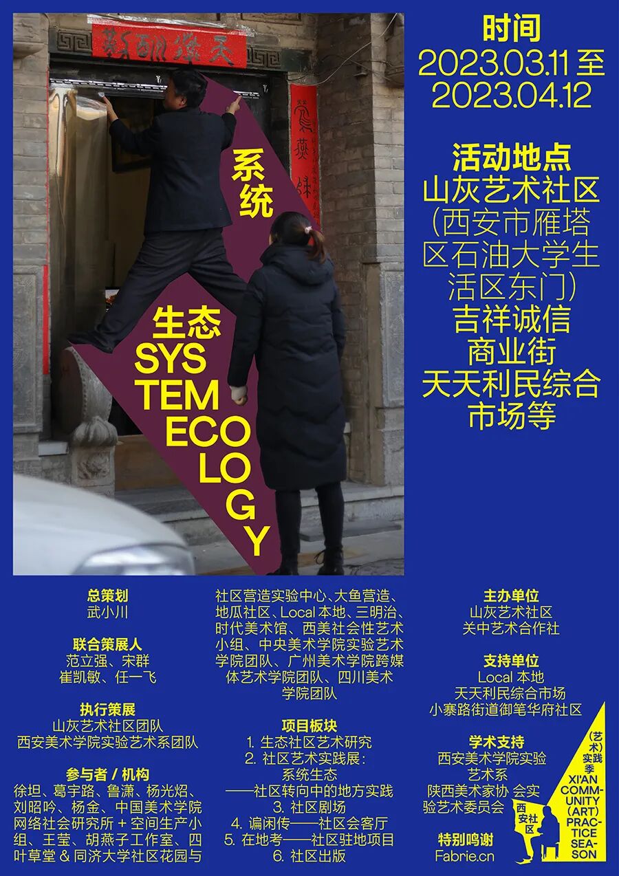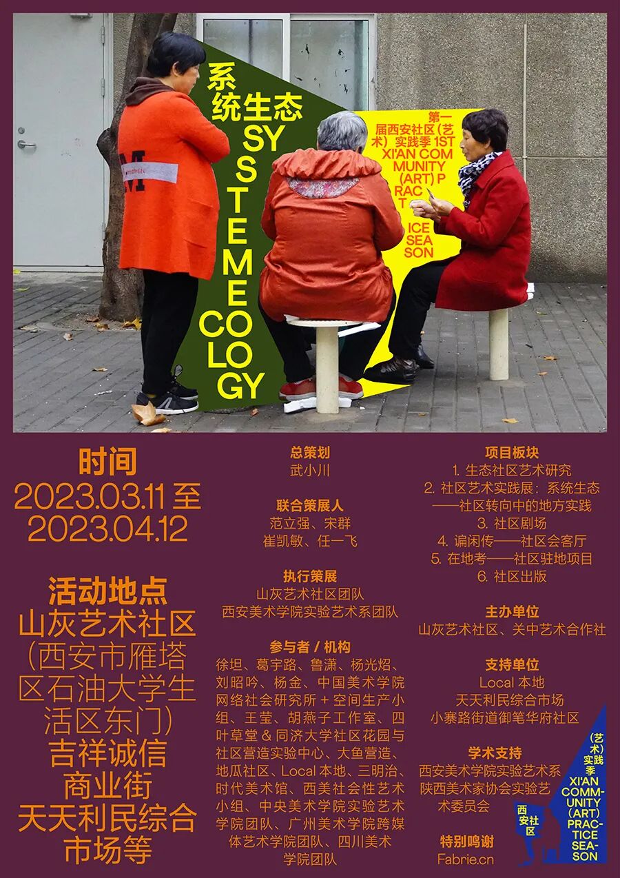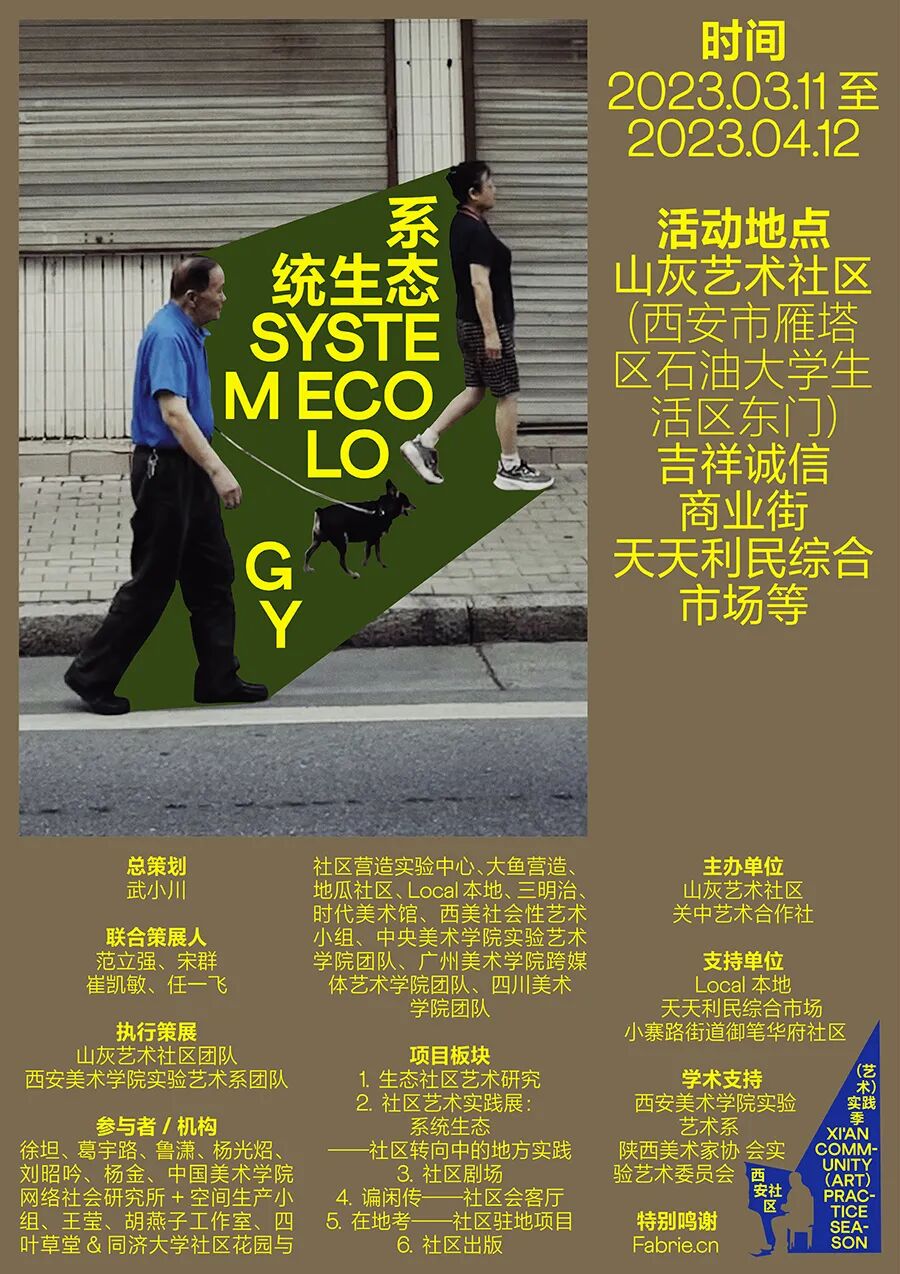 第一届西安社区(艺术)实践季以“系统生态“为主题,从两个维度出发——1、自然与人形成的生物生态系统; 2、人、社群与社会构成的社会生态系统。在此次视觉实践中,我们通过连接人与人、人与环境系统、人与运行系统、人与公共项目等社区环境的方式,使社区成员相互关联、相互依赖、相互作用。以一种不断展开、不断生成的关联方式,形成互构互融互生的关系。