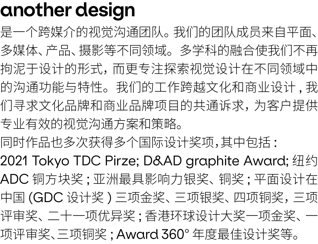 作为国美设计周的重点板块,Ongoing动态设计展由中国美术学院设计艺术学院与Design 360° 联合承办,虞琼洁(非白工作室)和刘钊(another design)负责执行策展,关注信息承载下的媒介塑造和新工具应用,参展设计师包括:another design、井口皓太、KAUKAU、大西景太、Lucas Hesse、Studio Dumbar、studio fnt、立入禁止、Thonik、何庭安和非白工作室。