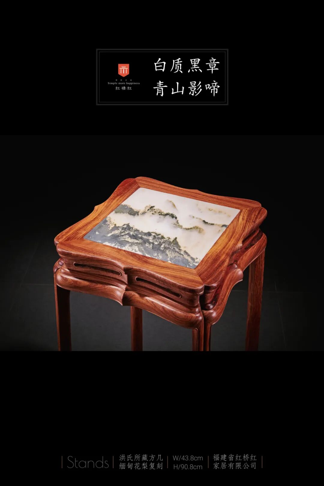 材质:缅花(大果紫檀)+天然云石