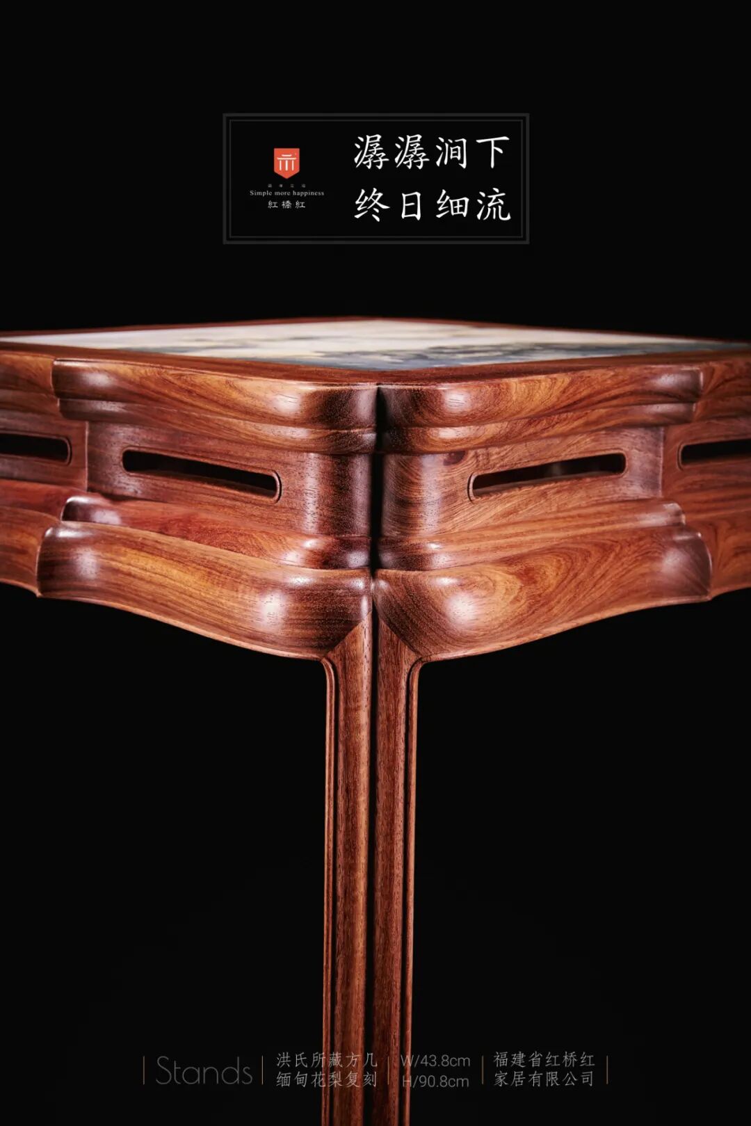 材质:缅花(大果紫檀)+天然云石