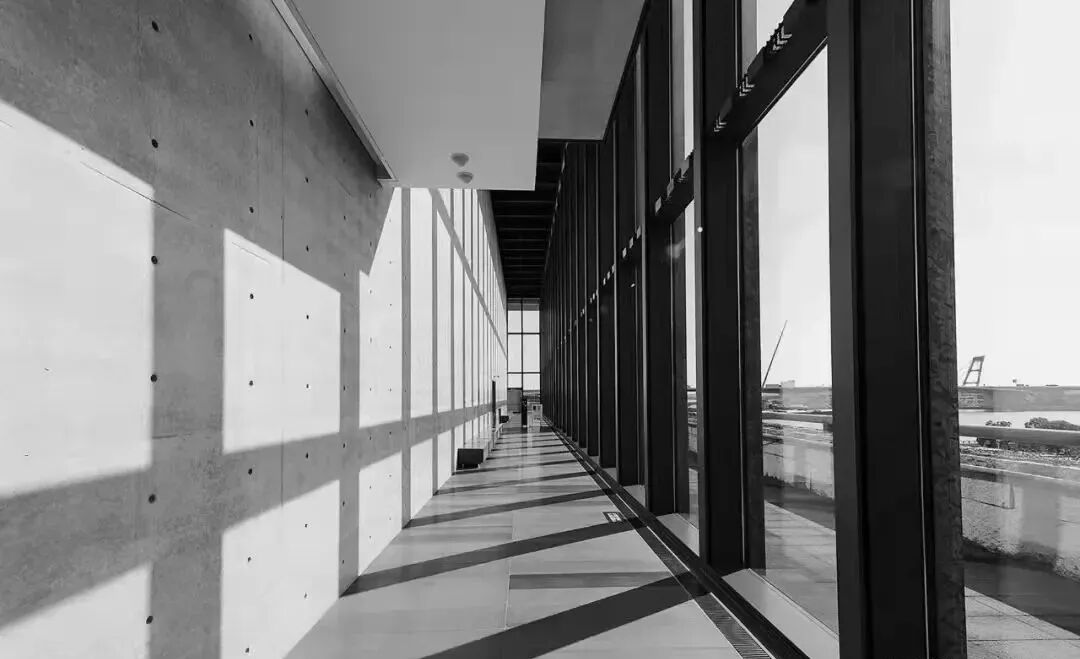 进入馆内,会发现建筑内核还是安藤先生最爱的清水混凝土样式;而最外层通透的玻璃,将阳光、海岸、绿树等外部景观都吸收了进来,站在巨大的走廊即可感受到与外部自然环境的联结感。