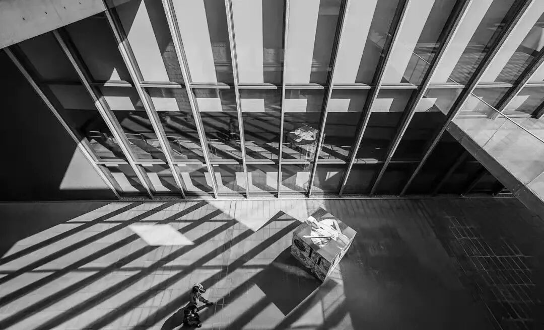 坐在走廊里,看着太阳缓步移动,墙壁上巨大的玻璃框阴影也在壮观地移动和变形,安藤老师又在给人示范如何把玩光影的游戏。