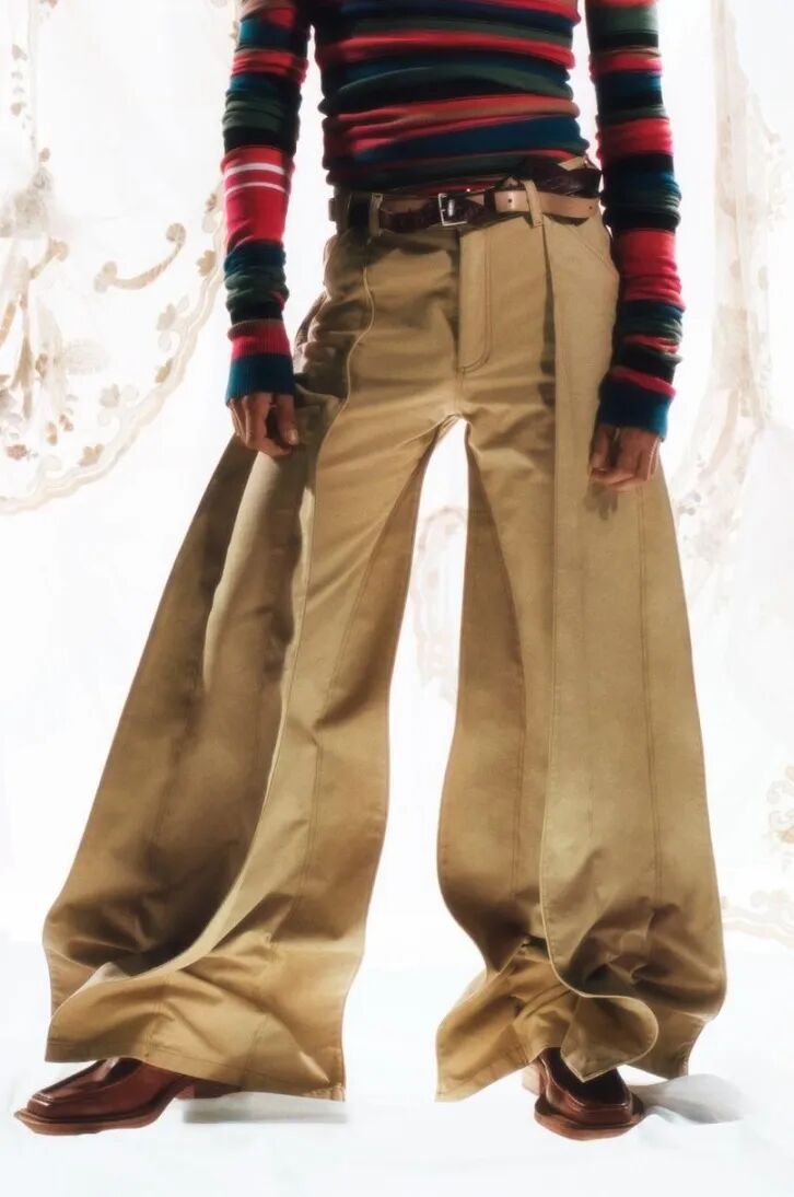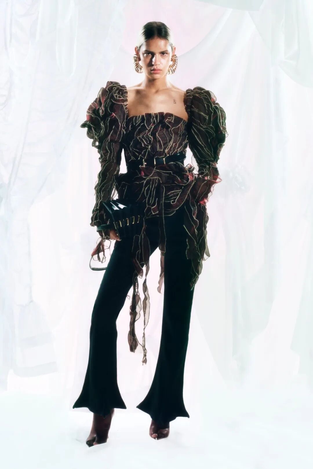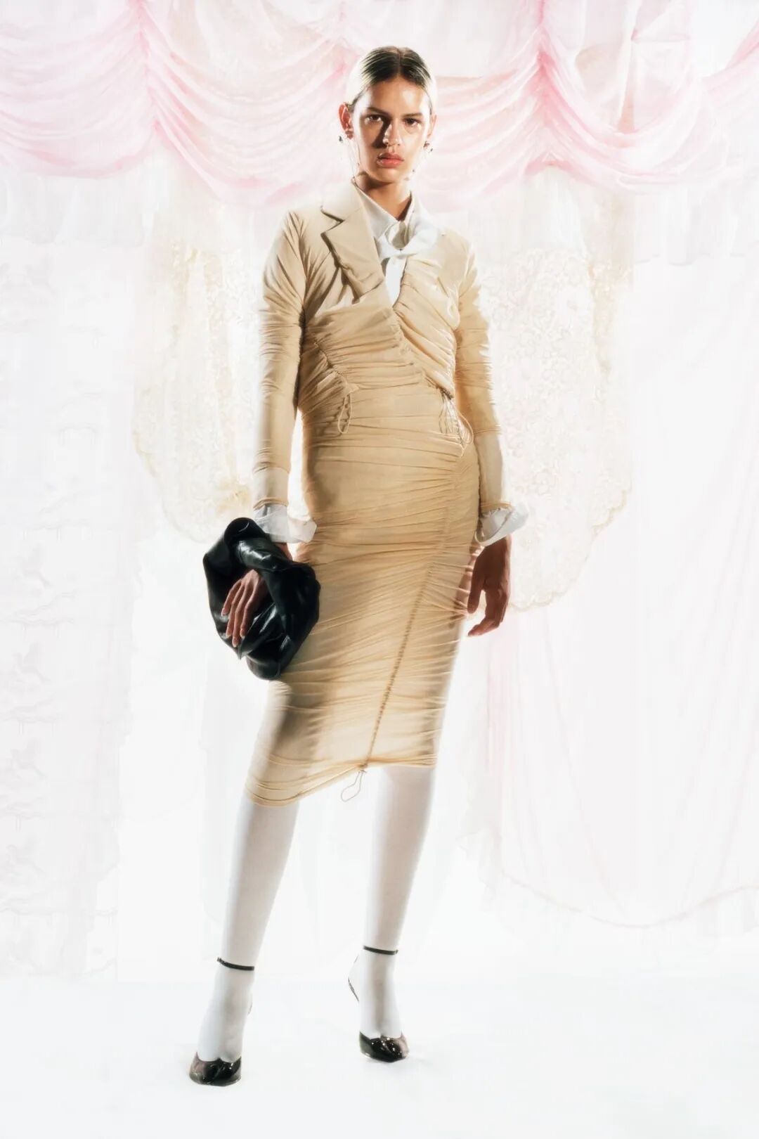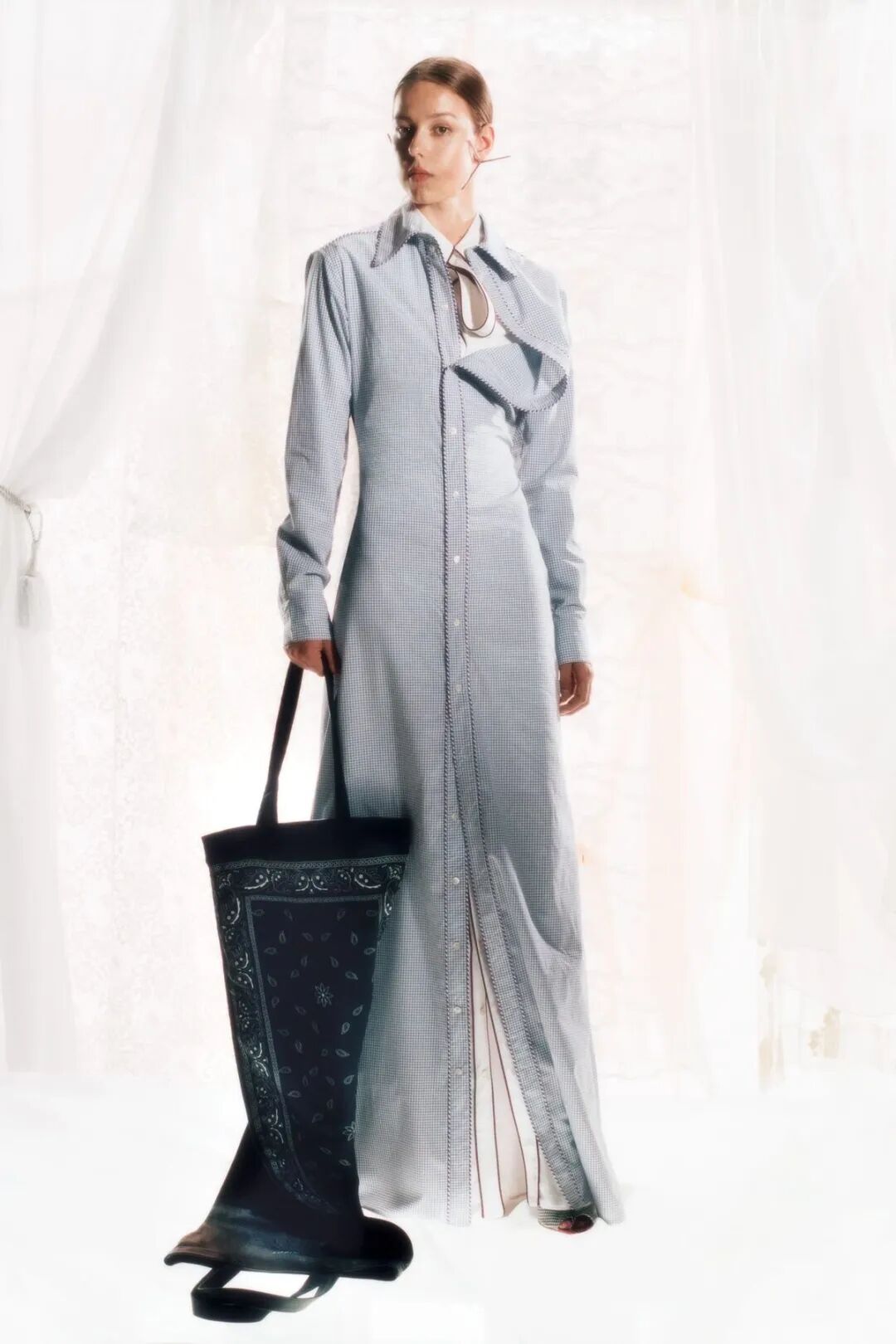 拧巴美学与错位的时尚,在Glenn Martens的手中加入了解构主义的色彩,无论是领子、门襟、袖子、裤腰、还是靴子,你都能找到它们的与众不同。