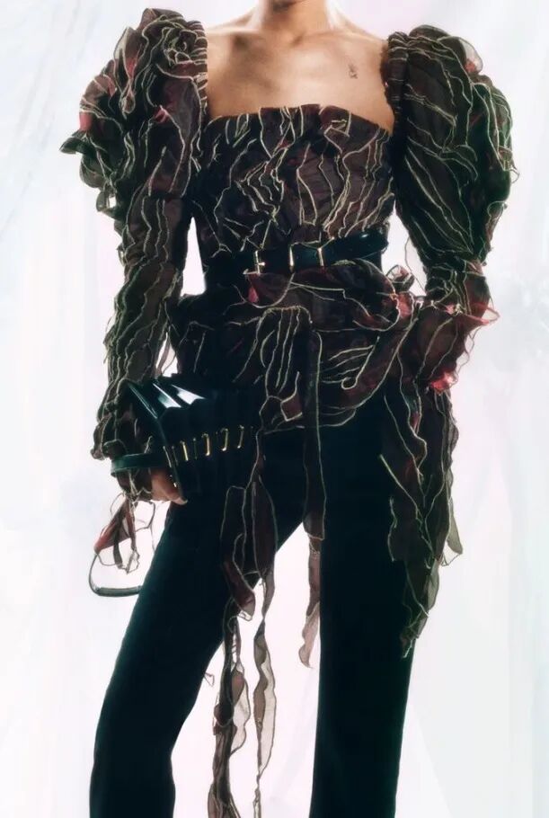 在Glenn Martens的设计中,你能感受离经叛道的暗黑,也能感受到糖果色带来的浪漫。多元的元素搭配总能在他的服装里找到属于不同风格的存在。