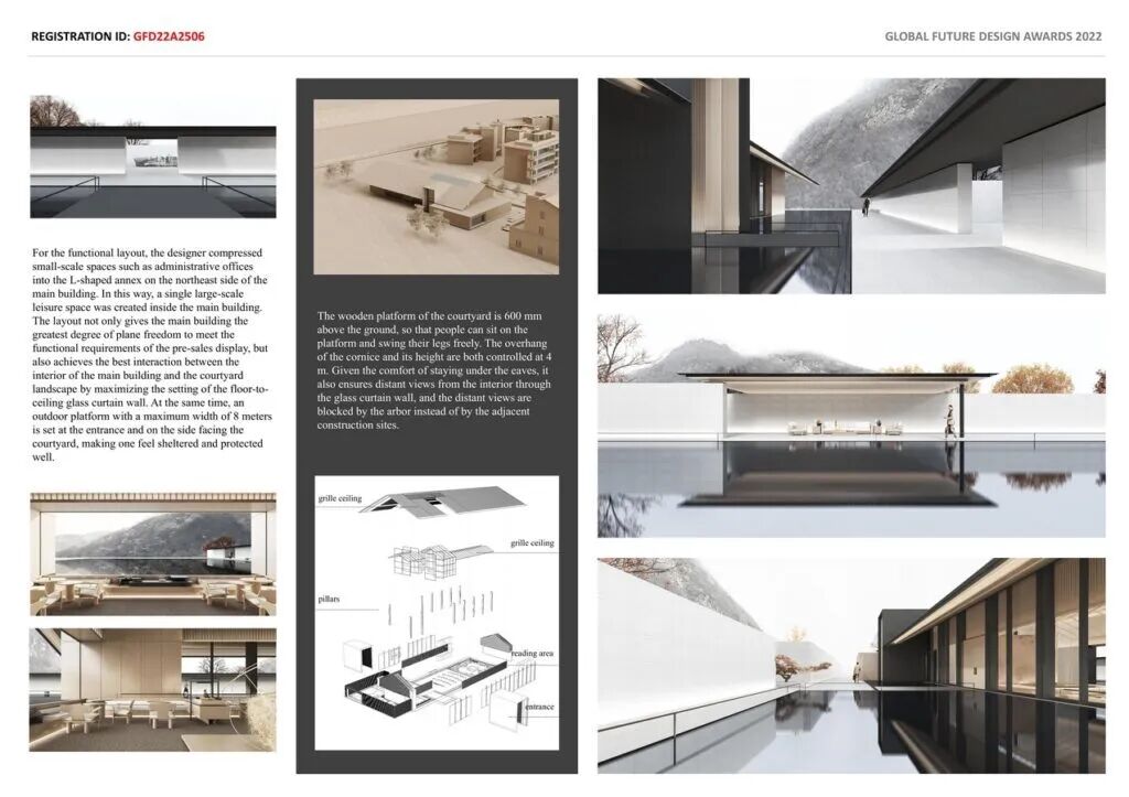 全球未来设计奖(Global Future Design Awards)由顶尖建筑媒体品牌Architecture Press Release于2016年发起,是世界上最负盛名的建筑、室内和产品设计奖项之一。该奖注重作品对新技术、材料、功能、美学、空间组织的研究和探索,以及全球化、灵活性、适应性和数字革新的呈现,该奖项提供了一个探讨建筑与自然世界、建筑与社区、建筑师与城市之间关系的平台。