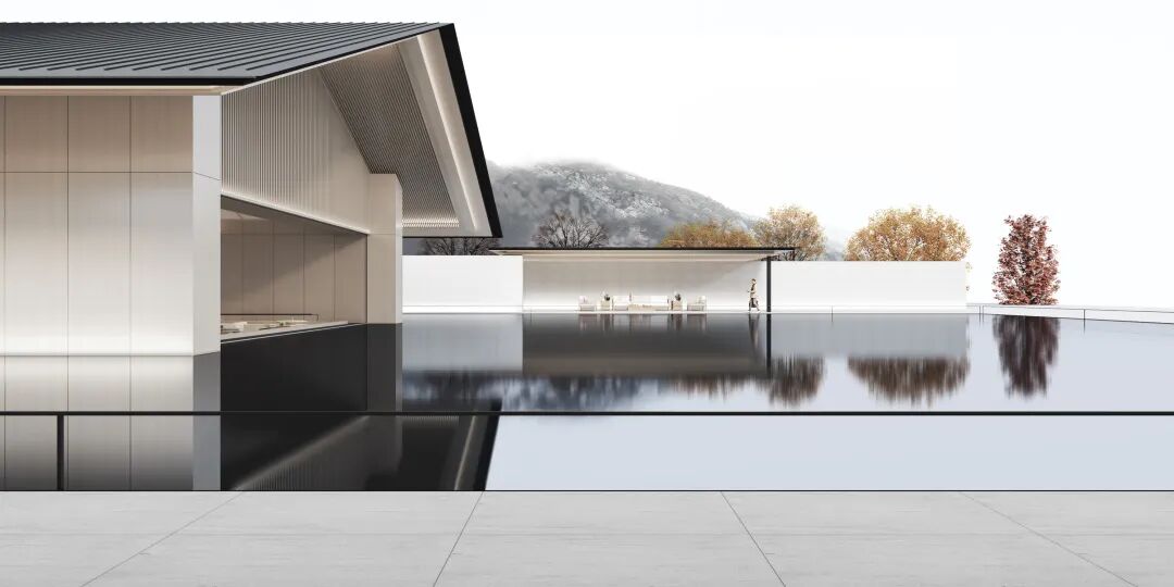 建筑的东侧与自然河道的江南村庄融为一体。被解构重组的屋檐与江南村庄的灰墙重檐相得益彰。它代表了从传统风格到现代风格的完美过渡。东北侧融入自然茶园景观,强调自然与日常惬意生活的融合。