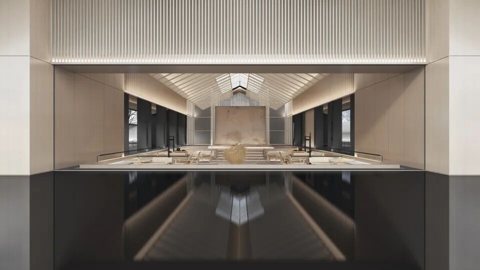 在设计屋顶时,安缇缦最终选用了双坡顶(一种四合院常用屋顶设计),这是一次充满心机的去符号化的大胆尝试。