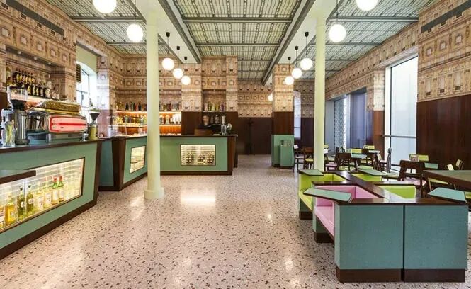 此外,室内设计师Lera Brumina和建筑师Artem Trigubchak联手设计了一间咖啡厅,部分灵感来源就来自于安德森设计的Bar Luce,以及电影《布达佩斯大饭店》。