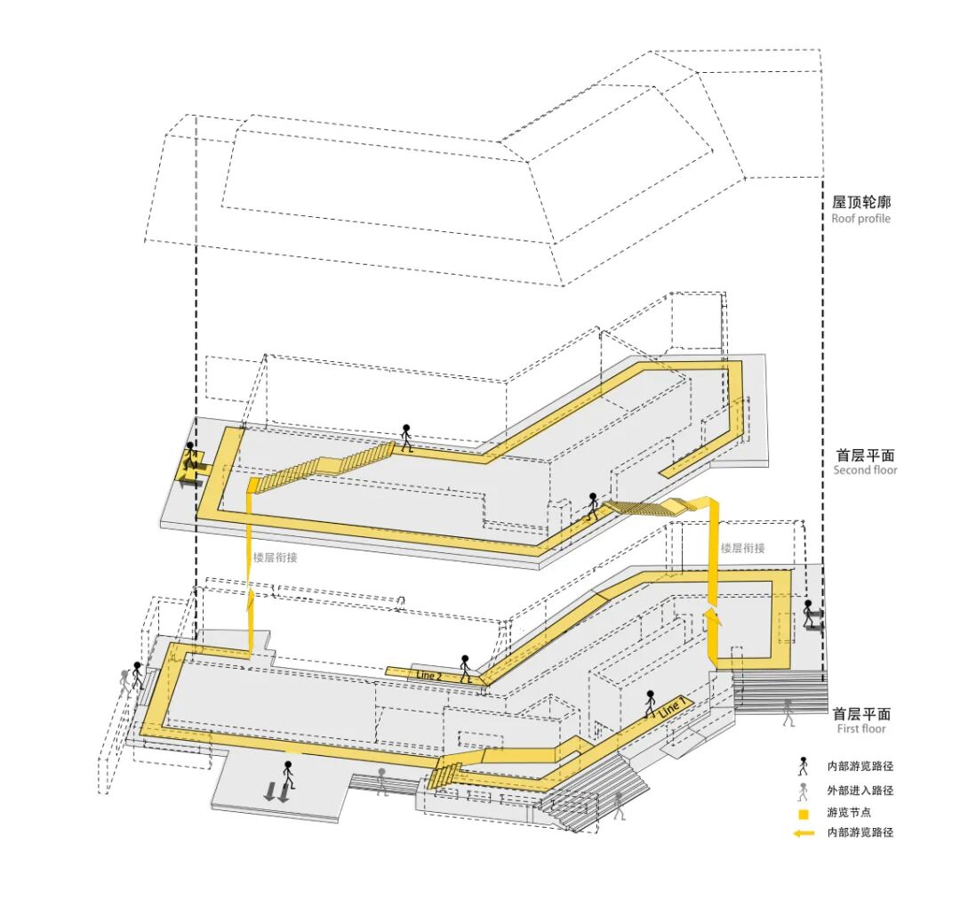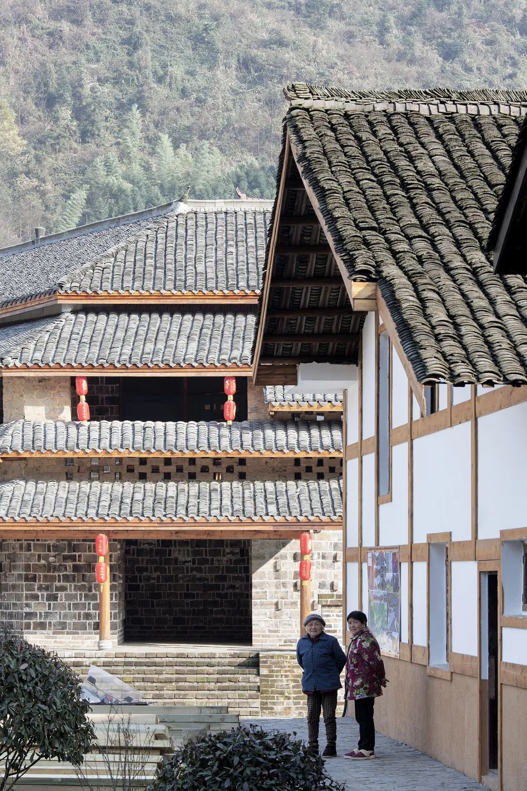 在整体过程中,设计团队遵循了避免大拆大建这一原则,以翻新、改建为主要手段,并充分利用了当地的老旧材料,令村庄在焕发新的生机的同时展现了本土老旧材料的魅力。其中清水村村部为村中唯一的重建项目,建筑沿场地一侧布置,以便退让出尽可能大的广场做为村民的活动场地。设计团队细致地在地性考量贯穿了整个设计过程。清水村气候湿润多雨天,依此设置层层叠叠的屋檐,大量的连廊、楼梯和露台等,为村民提供雨天的活动场地。