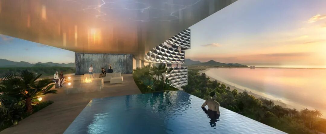 该设计方案将两间酒店结合成一整个大型休闲度假综合体,尽可能地保留原有的自然景观。这个高达160米的“新地平线”拥有标志性的“空中花园”,预计于2026年正式对外开放。