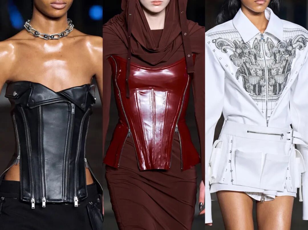 保持了自身性感和建筑感特点的同时有效的蹭了一波低腰风潮的热度,不同材质运用的可谓娴熟,既可以酷飒到极致也可以刚柔并济娘man平衡。