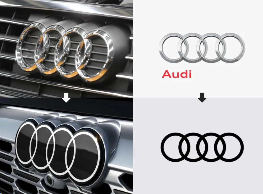 新LOGO采用更加扁平化的设计,黑色与白环双色调的配合可使徽标更加具有辨识度。奥迪LOGO设计师Andre Georgi表示:“我们希望新的圆环在未来的任何地方看起来都一样,无论是在杂志上、手机上还是广告牌。”
