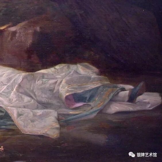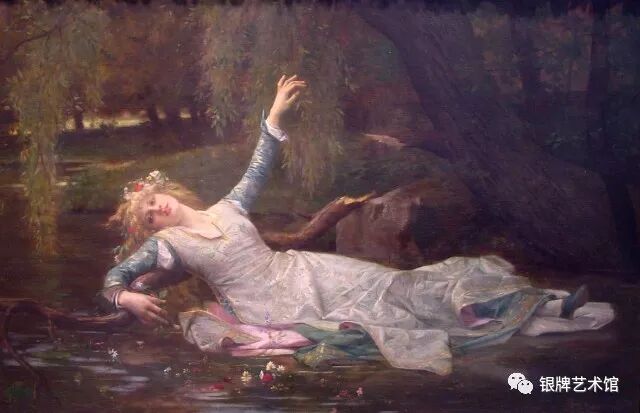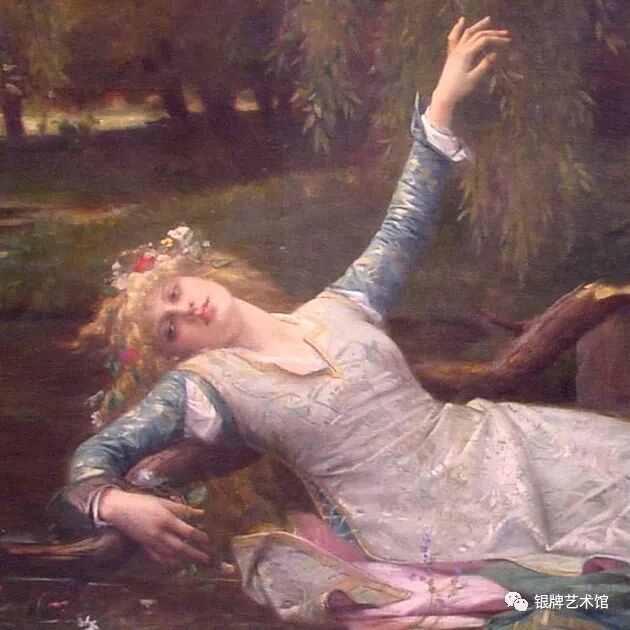 画家将那断裂的树枝的一段安排在奥菲莉娅的背后,以便托起奥菲莉娅的上半身。