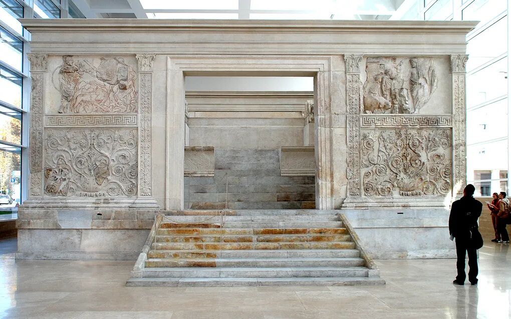 奥古斯都和平祭坛是罗马元老院为了纪念奥古斯都从西班牙和高卢平安归来而建造的一座祭坛。和平祭坛体现了罗马人借用希腊的样板,使其对象既有尊严又显优雅,但仍让罗马的思想占据主导的艺术态度。