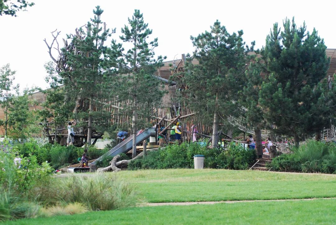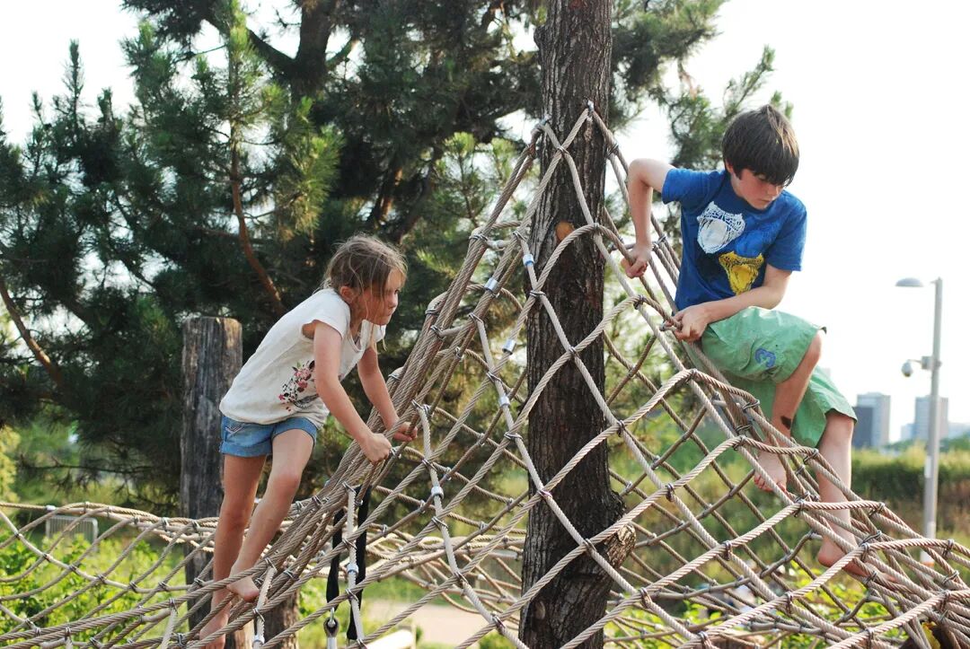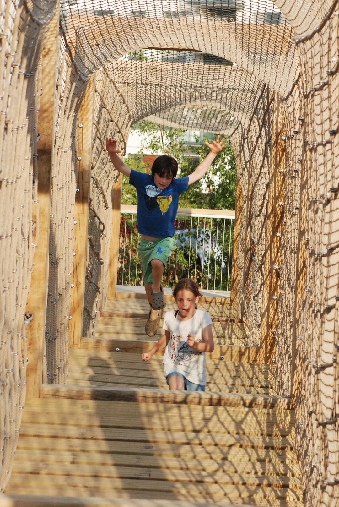 LUC的流动地貌和成片的悬垂植物确保了地形与更广泛的园地无缝融合。三侧可渗透边界鼓励儿童在指定的游戏空间之外继续玩耍。