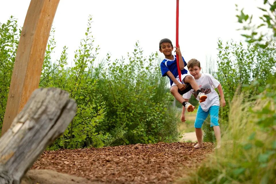 LUC’s fluid landform and swathes of draped planting ensure that the topography blends seamlessly into the wider parkland. Permeable boundaries on three sides encourage children to continue to play beyond the designated play space.