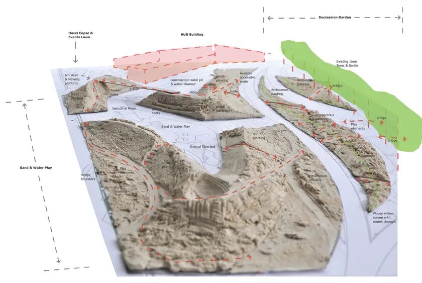 The local ecological heritage informed the key theme of ecological succession. The new play landscape contains a series of character areas, which tell plant life-cycle stories using both soft and hard materials to enhance the sensory experience for children of all ages and abilities.