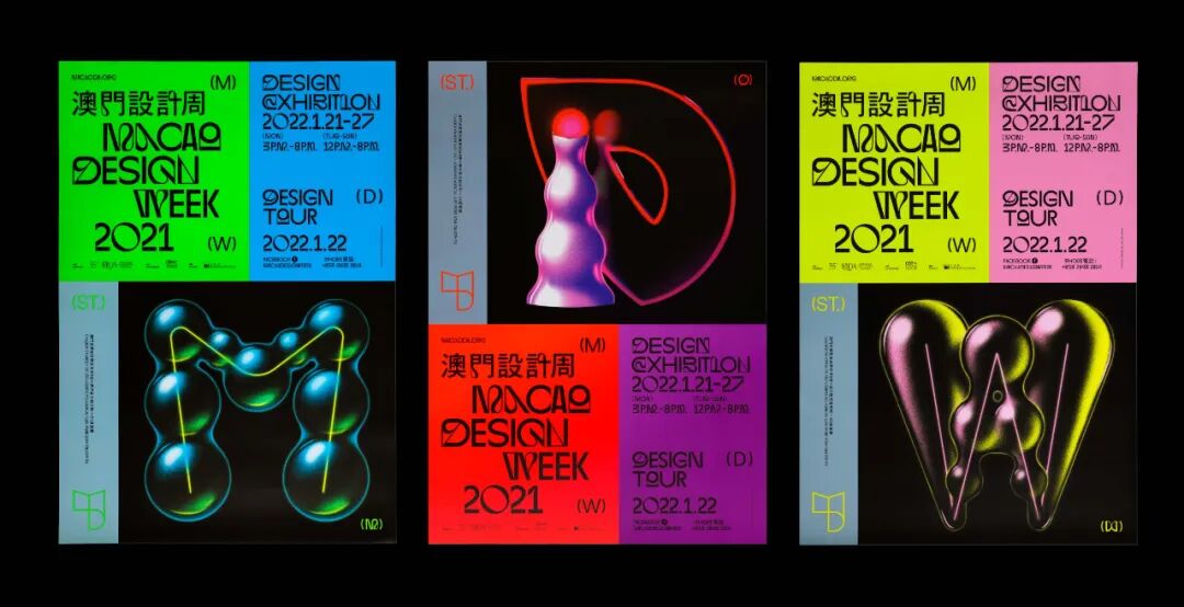 2021年澳门设计周的主视觉由英文开头字母“M”、“D”、“W”,造型极具个性和设计感,迷幻而神秘的质感也非常亮眼。
