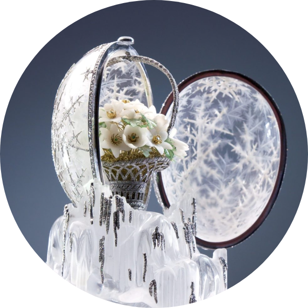 一件法贝热在1913年出品的铂金镶金红石水晶“冬季”盒子即将上拍,最高估价达300,000瑞士法郎。此件珠宝盒身由一整块水晶雕刻而成,带有许多金红石内含物以营造结霜效果,盒盖上的雪花装饰镶嵌以玫瑰式切割钻石。作品的设计灵感来源于设计师阿尔玛于同年为法贝热设计的冰晶彩蛋。