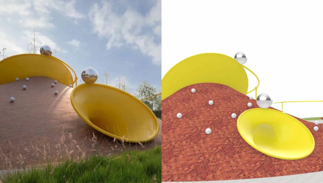 由于乐园的场地是起伏多变的,而且也存在不少异形的小品,所以整个建模过程还是挺有意思的,稍微复杂一些但又不至于太难,很适合没项目做的时候拿来练手……