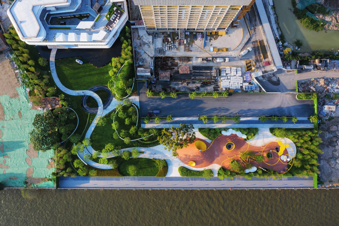 乐园场地原本是地产配建滨河绿地的一部分,可能有些刚入行的小伙伴还不知道什么是“配建”,简单来说,地产商拍下的居住用地不是“白拿”的,还需要额外在周边给zf配套建设市政道路、公园、学校等一系列公共服务设施,建设的成本基本要靠地产销售的利润来平衡。