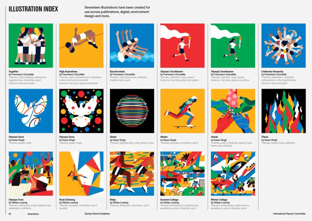 “艺术和创造力一直是奥运会的核心。从 1912 年到 1948 年,艺术比赛与体育运动同时举行——建筑师、诗人和艺术家获得了奥运会奖牌,”她总结道。“与国际设计师和插画师团队合作创作这些新元素有助于将创意重新置于奥林匹克品牌和运动的核心。”