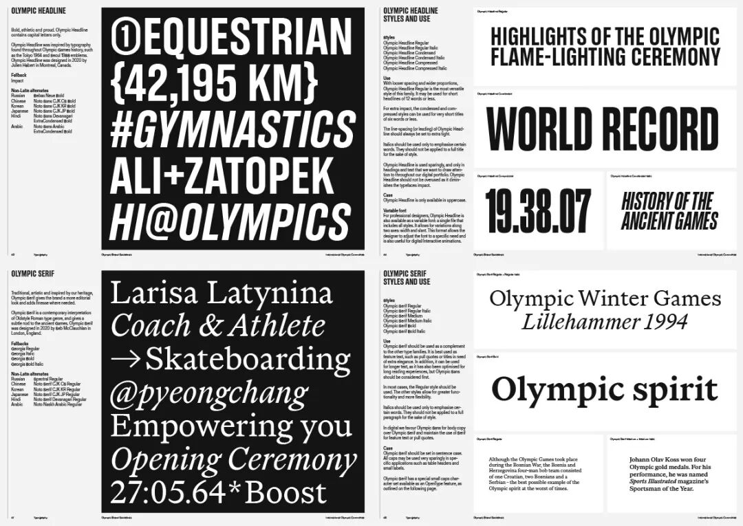 加拿大创意机构Hulse & Durrell与国际奥委会 ( IOC ) 合作制作了三种定制字体、一系列图形设备和插图,并包含使用指南。