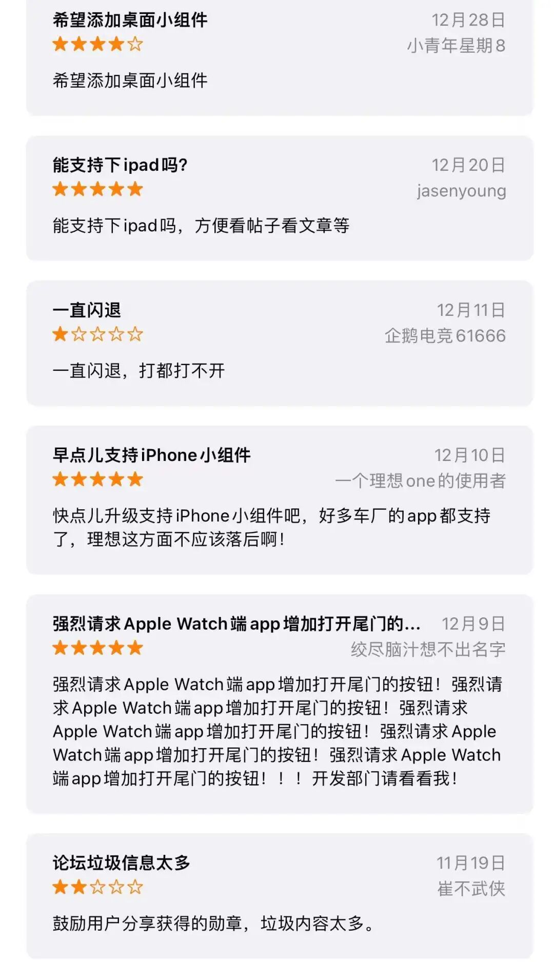 最重要的是,这些功能的出处基本都能在APP评论里找到,几乎都是理想APP的用户提出的修改意见,这种“今天提出下周解决”的响应速度也让用户非常乐于提出问题,形成良性循环。